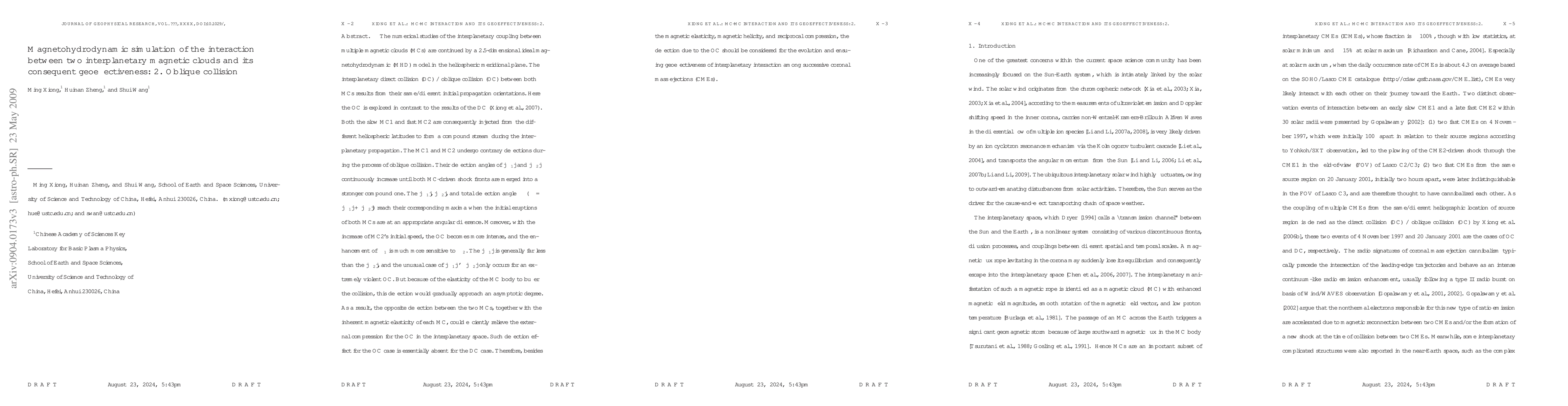 Researchers simulate the interaction between two interplanetary magnetic clouds and find that their oblique collision can lead to increased deflection angles, potentially affecting geoeffectiveness.