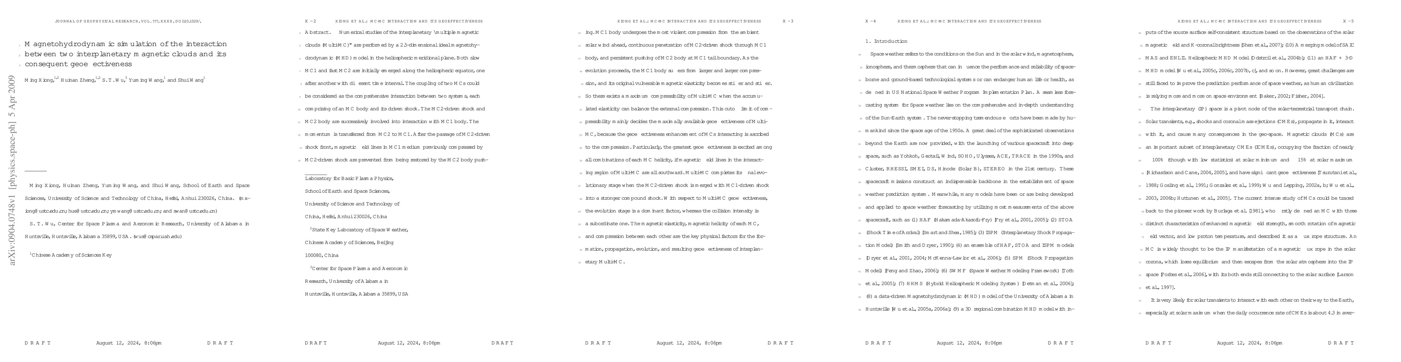 Researchers simulate interactions between two interplanetary magnetic clouds and find that their evolution stage, not collision intensity, is the key factor in determining geoeffectiveness, with magnetic elasticity and helicity playing critical roles.