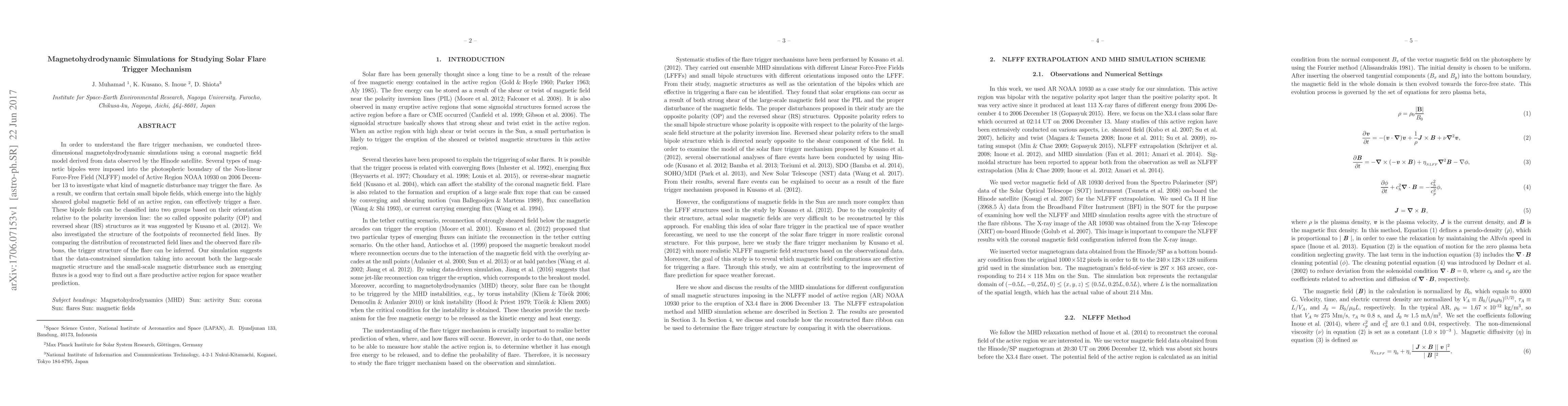 Researchers used magnetohydrodynamic simulations to study how small magnetic disturbances can trigger solar flares in active regions, confirming that certain bipole fields with specific orientations can cause flares.