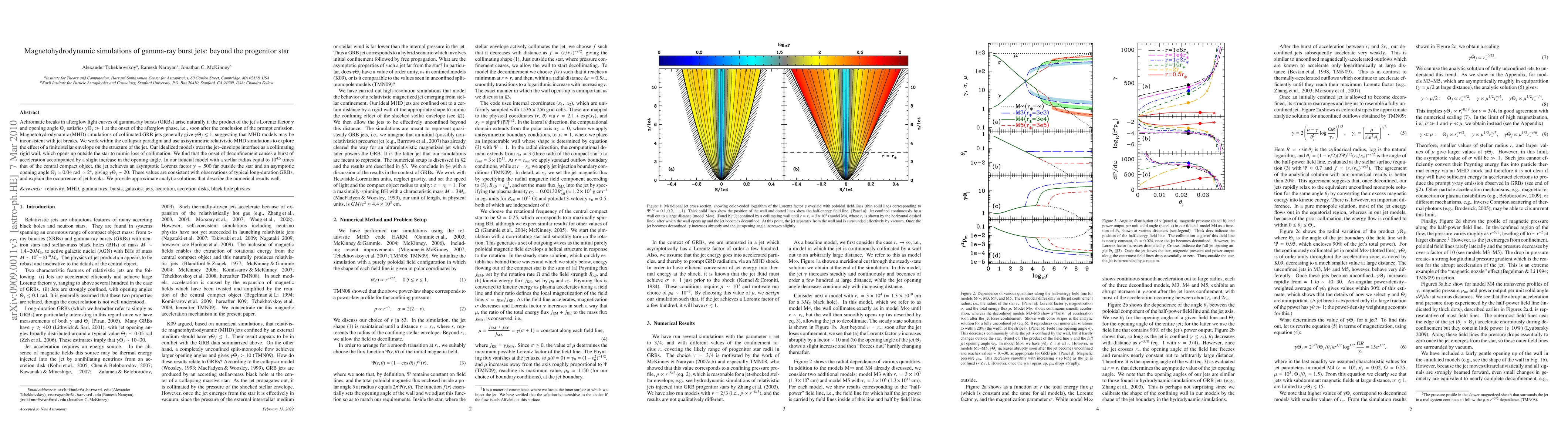 Achromatic breaks in afterglow light curves of gamma-ray bursts (GRBs) arise naturally if the product of the jet's Lorentz factor \gamma and opening angle \Theta_j satisfies (\gamma \Theta_j) >> 1 at the onset of the afterglow phase, i.e., soon after the conclusion of the prompt emission. Magnetohydrodynamic (MHD) simulations of collimated GRB jets generally give (\gamma \Theta_j) <~ 1, suggesting that MHD models may be inconsistent with jet breaks. We work within the collapsar paradigm and use axisymmetric relativistic MHD simulations to explore the effect of a finite stellar envelope on the structure of the jet. Our idealized models treat the jet-envelope interface as a collimating rigid wall, which opens up outside the star to mimic loss of collimation. We find that the onset of deconfinement causes a burst of acceleration accompanied by a slight increase in the opening angle. In our fiducial model with a stellar radius equal to 10^4.5 times that of the central compact object, the jet achieves an asymptotic Lorentz factor \gamma ~ 500 far outside the star and an asymptotic opening angle \Theta_j ~ 0.04 rad ~ 2 deg, giving (\gamma \Theta_j) ~ 20. These values are consistent with observations of typical long-duration GRBs, and explain the occurrence of jet breaks. We provide approximate analytic solutions that describe the numerical results well.