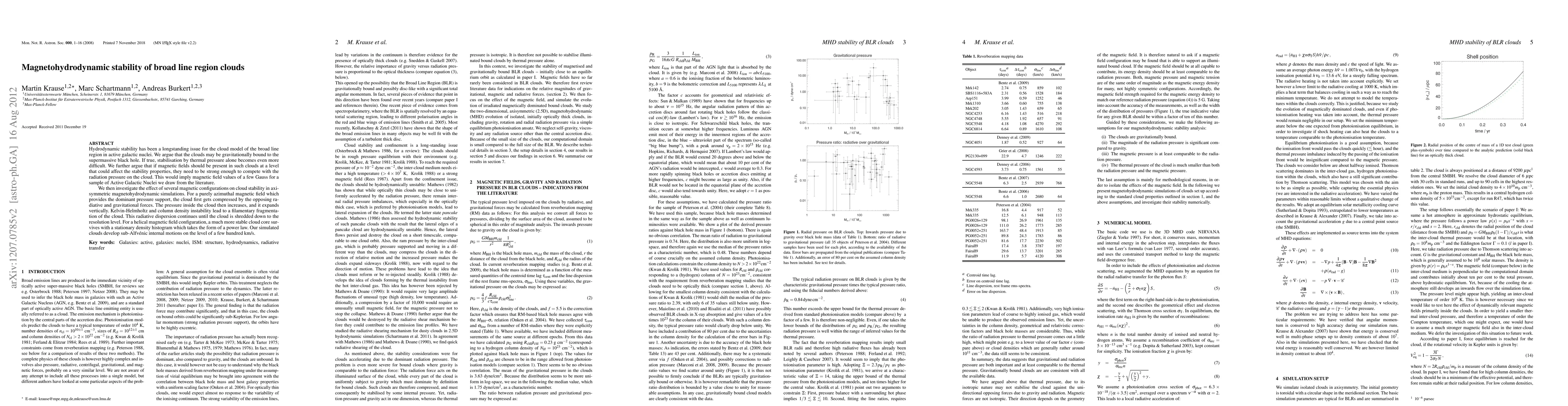 Hydrodynamic stability has been a longstanding issue for the cloud model of the broad line region in active galactic nuclei. We argue that the clouds may be gravitationally bound to the supermassive black hole. If true, stabilisation by thermal pressure alone becomes even more difficult. We further argue that if magnetic fields should be present in such clouds at a level that could affect the stability properties, they need to be strong enough to compete with the radiation pressure on the cloud. This would imply magnetic field values of a few Gauss for a sample of Active Galactic Nuclei we draw from the literature. We then investigate the effect of several magnetic configurations on cloud stability in axi-symmetric magnetohydrodynamic simulations. For a purely azimuthal magnetic field which provides the dominant pressure support, the cloud first gets compressed by the opposing radiative and gravitational forces. The pressure inside the cloud then increases, and it expands vertically. Kelvin-Helmholtz and column density instability lead to a filamentary fragmentation of the cloud. This radiative dispersion continues until the cloud is shredded down to the resolution level. For a helical magnetic field configuration, a much more stable cloud core survives with a stationary density histogram which takes the form of a power law. Our simulated clouds develop sub-Alfvenic internal motions on the level of a few hundred km/s.