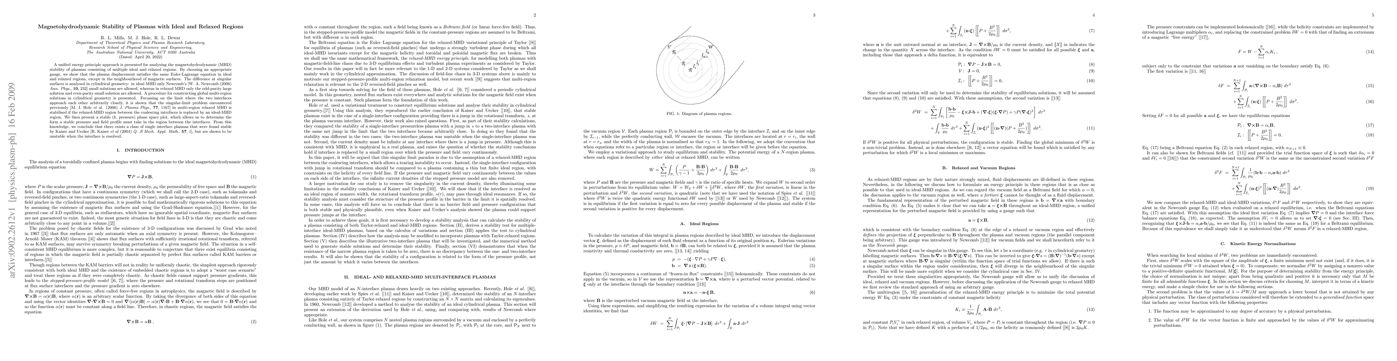 This paper presents a unified energy principle for analyzing the magnetohydrodynamic stability of plasmas with both ideal and relaxed regions, showing that plasma displacements follow the same Euler-Lagrange equations except near magnetic surfaces. It concludes that replacing a relaxed MHD region with an ideal MHD region stabilizes the singular-limit problem, revealing the instability of previously thought stable single interface plasmas when resolved.