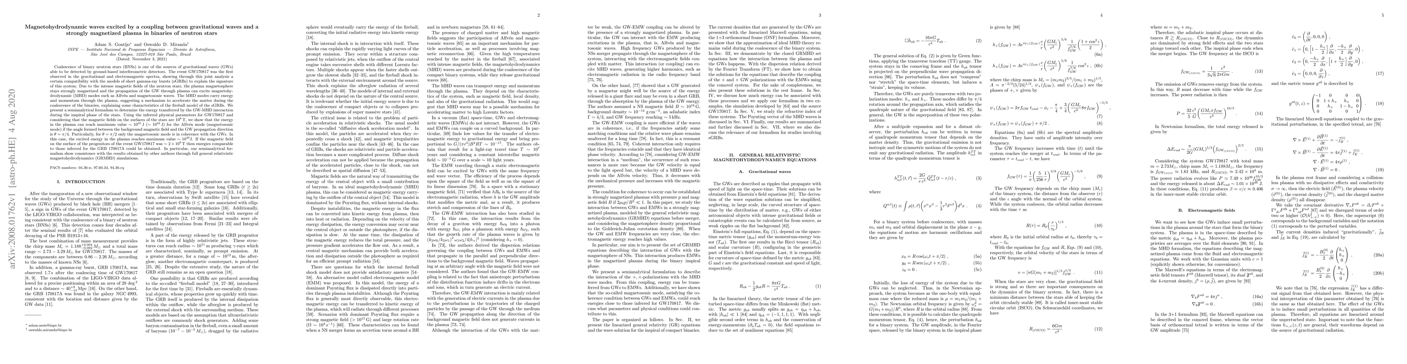 Coalescence of binary neutron stars (BNSs) is one of the sources of gravitational waves (GWs) able to be detected by ground-based interferometric detectors. The event GW170817 was the first observed in the gravitational and electromagnetic spectra, showing through this joint analysis a certain compatibility with the models of short gamma-ray bursts (sGRBs) to explain the signature of this system. Due to the intense magnetic fields of the neutron stars, the plasma magnetosphere stays strongly magnetized and the propagation of the GW through plasma can excite magnetohydrodynamic (MHD) modes such as Alfv\'en and magnetosonic waves. The MHD modes carry energy and momentum through the plasma, suggesting a mechanism to accelerate the matter during the coalescence of the binaries, explaining some characteristics of the fireball model of the sGRBs. We present a semianalytical formalism to determine the energy transferred by the GW-MHD interaction during the inspiral phase of the stars. Using the inferred physical parameters for GW170817, we show that the energy in the plasma can reach maximum value $\sim 10^{35}\,{\rm J}$ ($\sim 10^{32}\,{\rm J}$) for the Alfv\'en mode (magnetosonic mode) if the angle formed between the background magnetic field and the GW propagation direction is $\theta = \pi / 4$. Particularly, for $\theta = \pi / 2$ only the magnetosonic mode is in coherence with the GWs. In this case, the excited energy in the plasma reaches maximum value $\sim 10^{36} {\rm J}$. If the magnetic field on the surface of the progenitors of the event GW170817 was $\sim 2\times 10^{9}\,{\rm T}$ then energies comparable to those inferred for the GRB 170817A could be obtained. In particular, our semianalytical formalism show consistence with the results obtained by other authors through full general relativistic magnetohydrodynamics (GRMHD) simulations. [ABRIDGED]