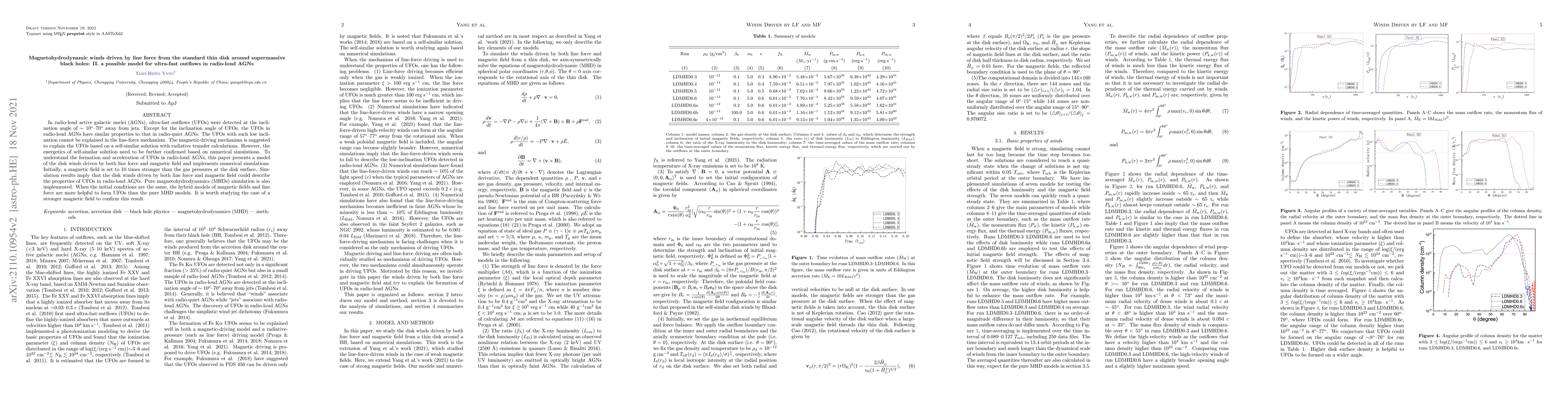This paper proposes a model for ultra-fast outflows (UFOs) in radio-loud active galactic nuclei (AGNs) driven by both line force and magnetic fields, supported by numerical simulations. The hybrid model, incorporating both mechanisms, better explains the observed properties of UFOs compared to pure magnetohydrodynamics simulations.