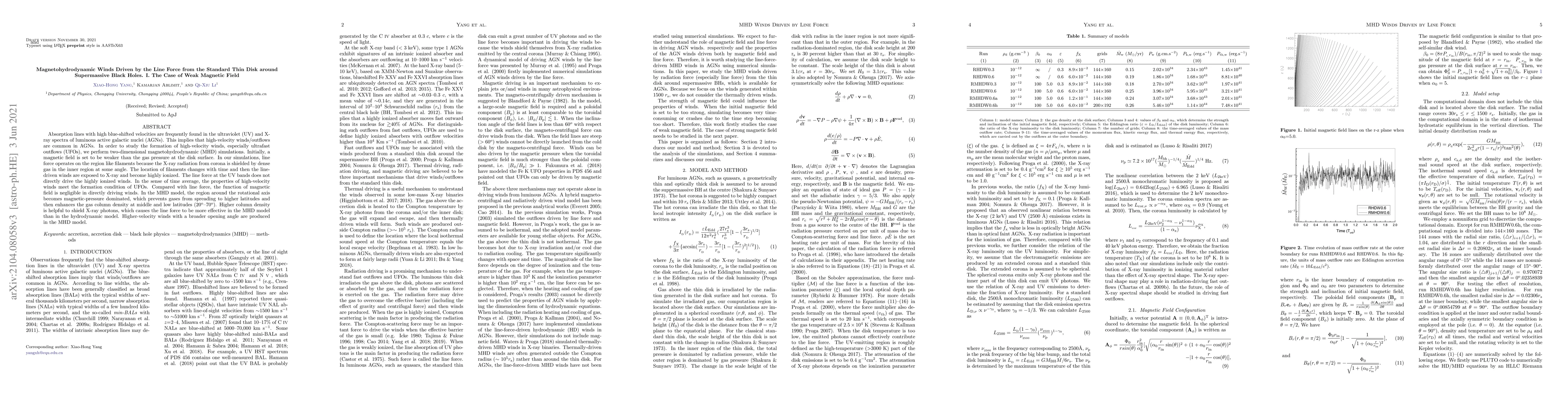 This paper investigates the formation of high-velocity winds around supermassive black holes using magnetohydrodynamic simulations, focusing on the role of line force in the presence of a weak magnetic field. The study finds that line force, rather than the magnetic field, drives the winds, which meet the conditions for ultrafast outflows.