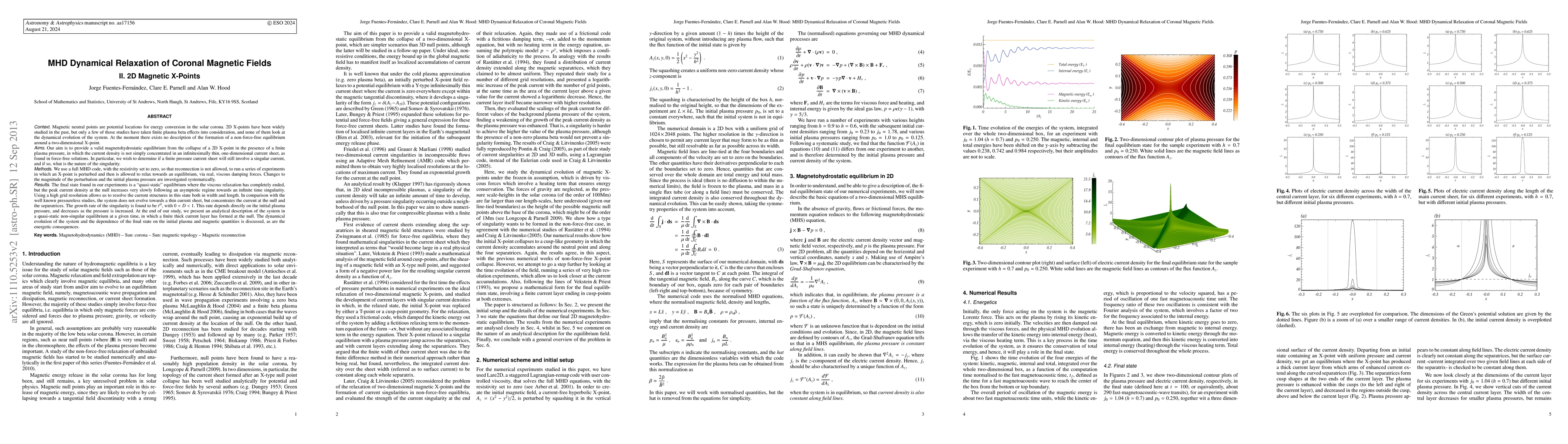 We provide a valid magnetohydrostatic equilibrium from the collapse of a 2D X-point in the presence of a finite plasma pressure, in which the current density is not simply concentrated in an infinitesimally thin, one-dimensional current sheet, as found in force-free solutions. In particular, we wish to determine if a finite pressure current sheet will still involve a singular current, and if so, what is the nature of the singularity. We use a full MHD code, with the resistivity set to zero, so that reconnection is not allowed, to run a series of experiments in which an X-point is perturbed and then is allowed to relax towards an equilibrium, via real, viscous damping forces. Changes to the magnitude of the perturbation and the initial plasma pressure are investigated systematically. The final state found in our experiments is a "quasi-static" equilibrium where the viscous relaxation has completely ended, but the peak current density at the null increases very slowly following an asymptotic regime towards an infinite time singularity. Using a high grid resolution allows us to resolve the current structures in this state both in width and length. In comparison with the well known pressureless studies, the system does not evolve towards a thin current sheet, but concentrates the current at the null and the separatrices. The growth rate of the singularity is found to be tD, with 0 < D < 1. This rate depends directly on the initial plasma pressure, and decreases as the pressure is increased. At the end of our study, we present an analytical description of the system in a quasi-static non-singular equilibrium at a given time, in which a finite thick current layer has formed at the null.