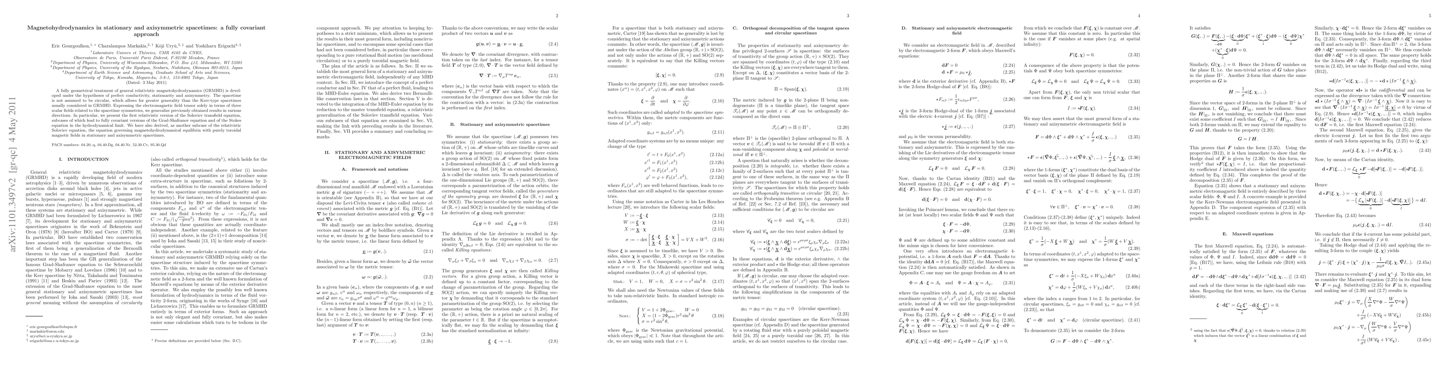 The paper presents a novel, fully covariant formulation of magnetohydrodynamics in stationary and axisymmetric spacetimes, generalizing previous results and introducing the relativistic Soloviev transfield equation.