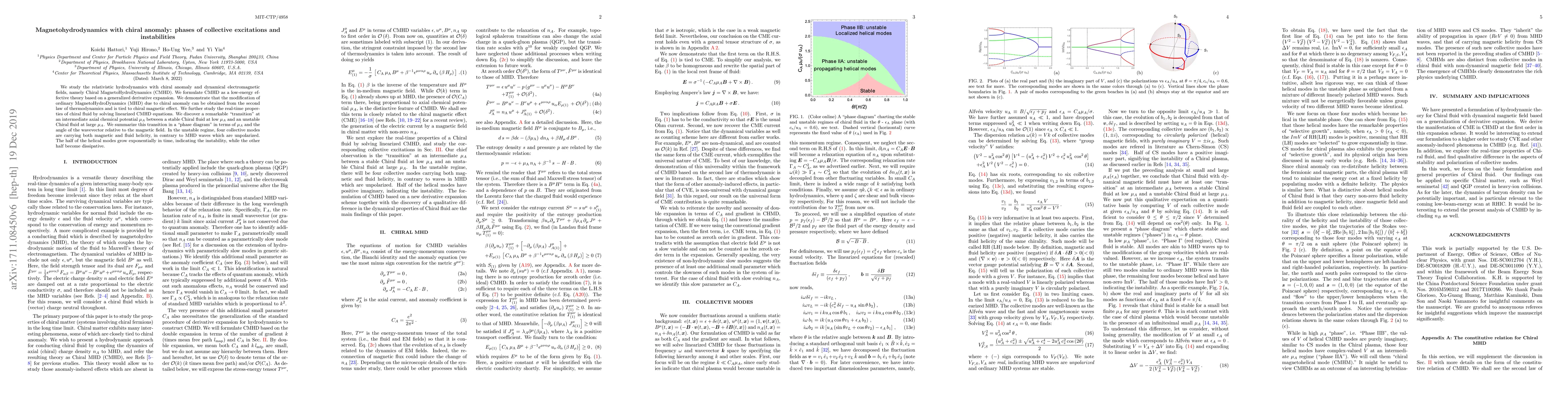 Researchers studied a new type of fluid dynamics called Chiral MagnetoHydroDynamics, which predicts the existence of a 'transition' between stable and unstable phases, featuring collective modes carrying both magnetic and fluid helicity.