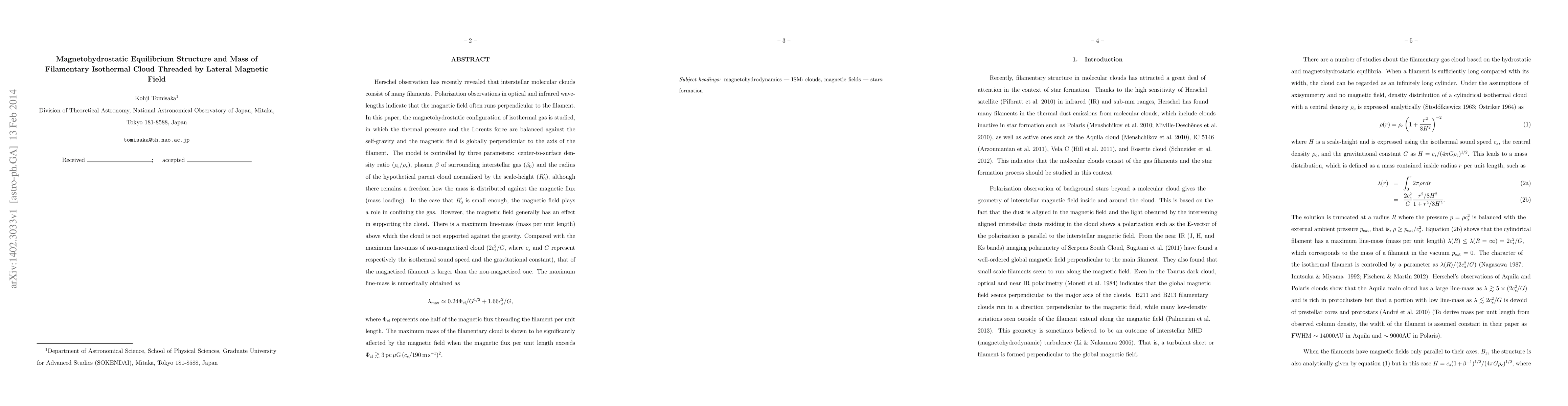 Herschel observation has recently revealed that interstellar molecular clouds consist of many filaments. Polarization observations in optical and infrared wavelengths indicate that the magnetic field often runs perpendicular to the filament. In this paper, the magnetohydrostatic configuration of isothermal gas is studied, in which the thermal pressure and the Lorentz force are balanced against the self-gravity and the magnetic field is globally perpendicular to the axis of the filament. The model is controlled by three parameters: center-to-surface density ratio (\rho_c/\rho_s), plasma \beta of surrounding interstellar gas (\beta_0) and the radius of the hypothetical parent cloud normalized by the scale-height (R'_0), although there remains a freedom how the mass is distributed against the magnetic flux (mass loading). In the case that R'_0 is small enough, the magnetic field plays a role in confining the gas. However, the magnetic field generally has an effect in supporting the cloud. There is a maximum line-mass (mass per unit length) above which the cloud is not supported against the gravity. Compared with the maximum line-mass of non-magnetized cloud (2c_s^2/G, where c_s and G represent respectively the isothermal sound speed and the gravitational constant), that of the magnetized filament is larger than the non-magnetized one. The maximum line-mass is numerically obtained as \lambda_max \simeq 0.24 \Phi_cl/G^1/2 + 1.66 c_s^2/G, where \Phi_cl represents one half of the magnetic flux threading the filament per unit length. The maximum mass of the filamentary cloud is shown to be significantly affected by the magnetic field when the magnetic flux per unit length exceeds \Phi_cl \gtrsim 3 pc \mu G (c_s/190 m s^-1)^2.