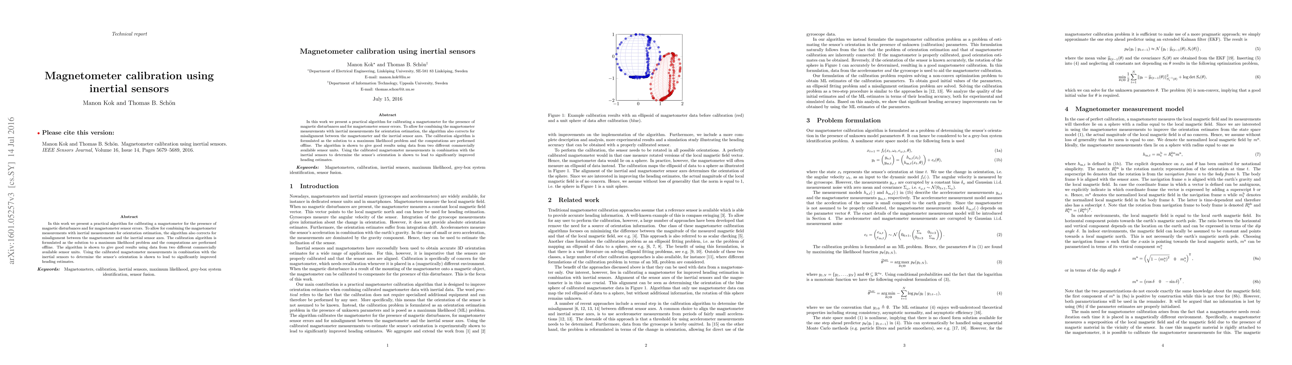 This paper proposes an algorithm for calibrating magnetometers to correct for magnetic disturbances and sensor errors, and to align them with inertial sensors for better orientation estimation. The offline maximum likelihood approach yields improved heading estimates when combined with inertial sensor data.