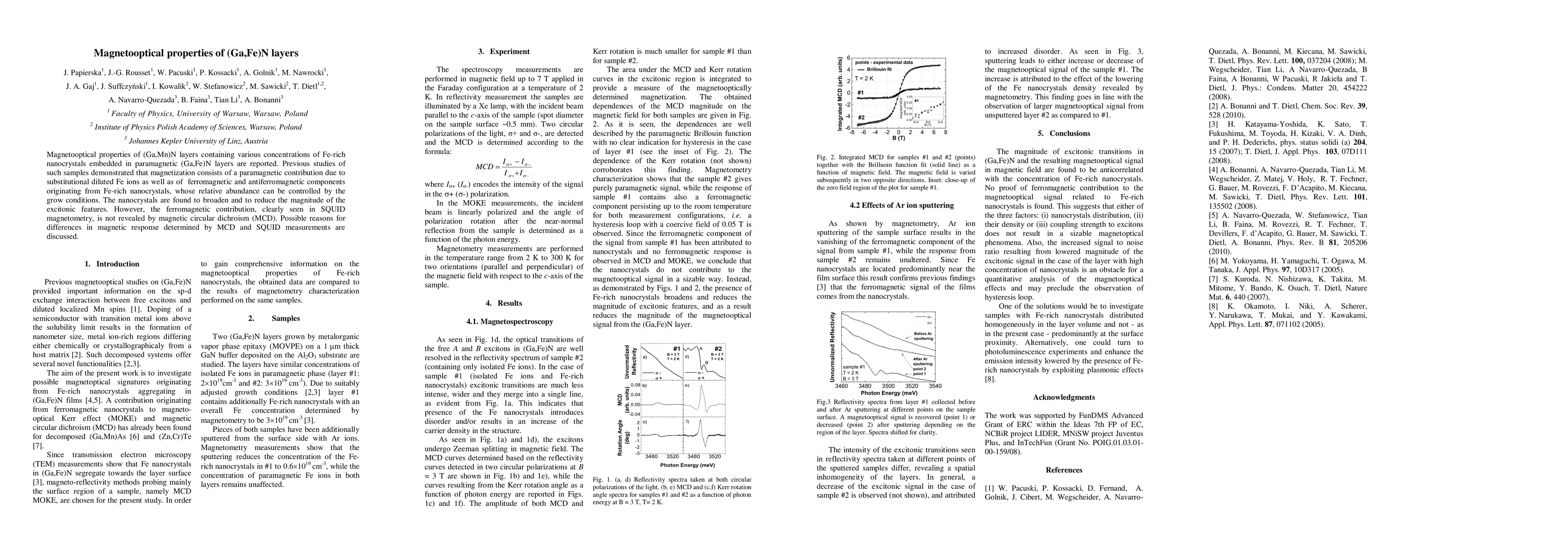This paper investigates the magnetooptical properties of (Ga,Mn)N layers with Fe-rich nanocrystals, showing that the nanocrystals affect excitonic features. While SQUID magnetometry detects ferromagnetic contributions, magnetic circular dichroism does not, prompting a discussion on the discrepancies in magnetic response measurements.