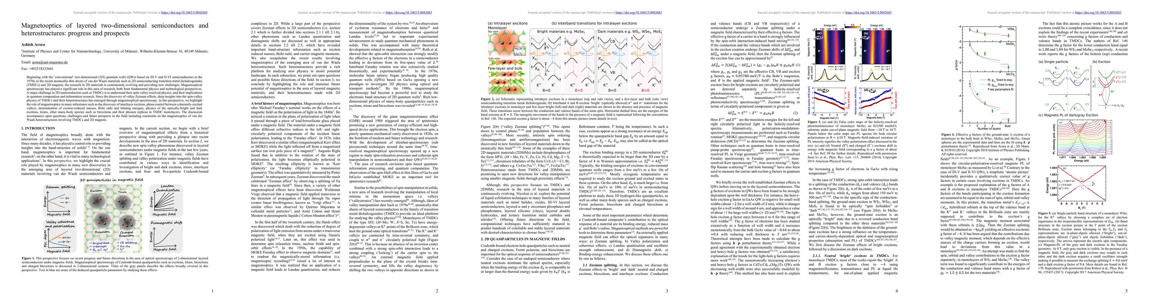 This paper reviews the significant advancements and future prospects in magnetooptics of layered two-dimensional semiconductors, particularly focusing on transition metal dichalcogenides (TMDCs). It highlights the role of magnetooptical spectroscopy in understanding spin-valley physics and its implications for quantum computation, while discussing key milestones and remaining challenges in the field.