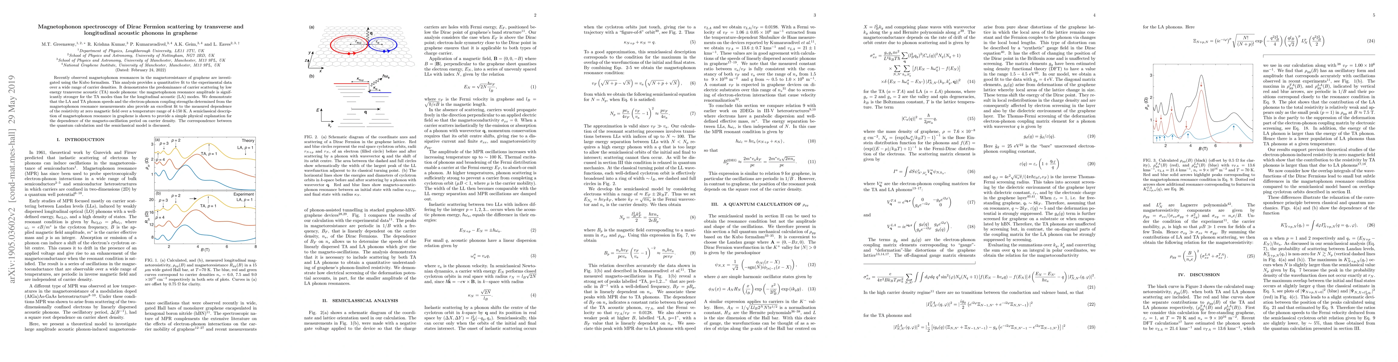 This study investigates magnetophonon resonances in graphene's magnetoresistance using the Kubo formalism, showing that transverse acoustic phonons predominantly scatter Dirac fermions. The analysis reveals stronger resonance amplitudes for transverse compared to longitudinal phonons and correlates these findings with resistivity measurements across a temperature range, confirming the physical model's accuracy.