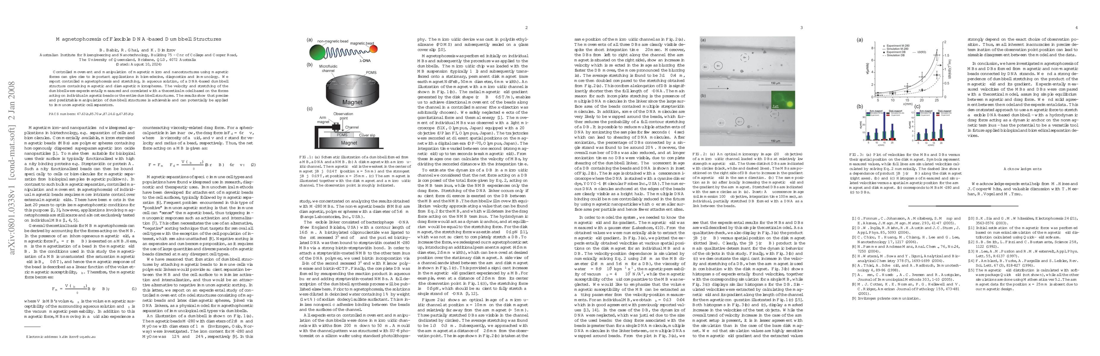 This paper reports on the controlled magnetophoresis and stretching of DNA-based dumbbell structures in aqueous solutions, demonstrating precise manipulation achievable through magnetic forces. Theoretical models correlate experimental measurements with the forces acting on the structures, indicating potential applications in biomedical immunomagnetic cell separators.