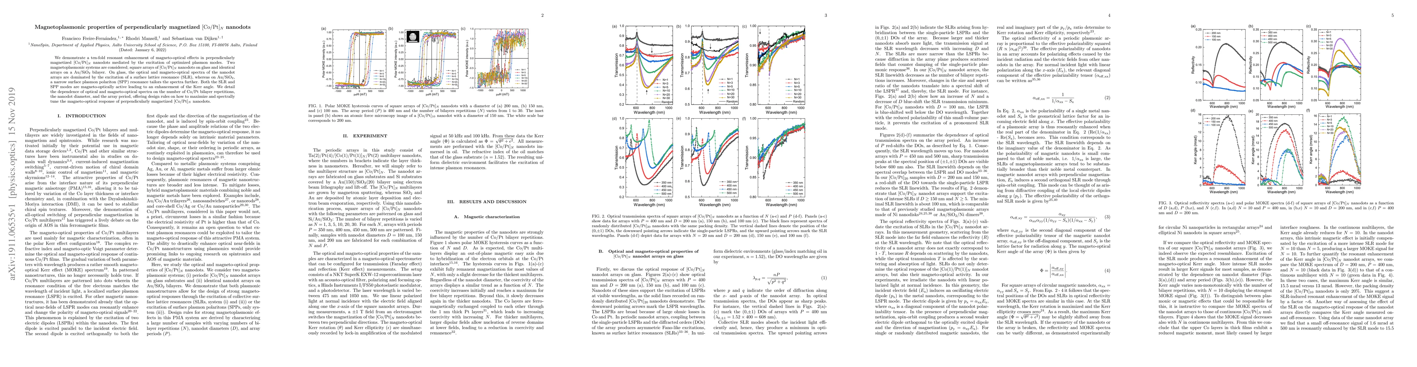 This paper demonstrates a tenfold enhancement of magneto-optical effects in perpendicularly magnetized $[$Co/Pt$]_{N}$ nanodots through optimized plasmon modes. It explores two systems: arrays on glass and on a Au/SiO2 bilayer, showing that both surface lattice and plasmon polariton resonances can significantly enhance the Kerr angle.