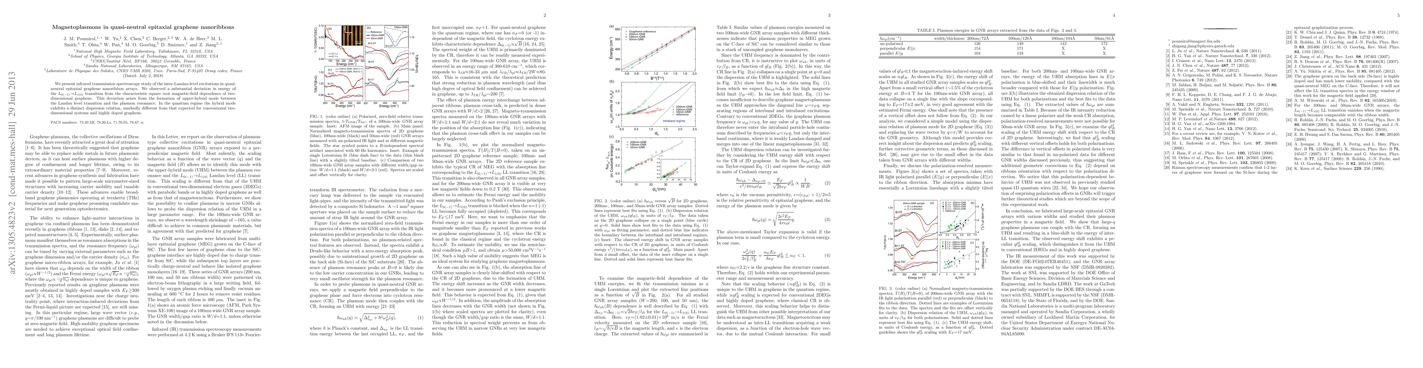 This study reveals a significant deviation in the energy of inter-Landau-level transitions in quasi-neutral epitaxial graphene nanoribbons due to the formation of an upper-hybrid mode between Landau level transitions and plasmon resonance, resulting in a distinct dispersion relation in the quantum regime.
