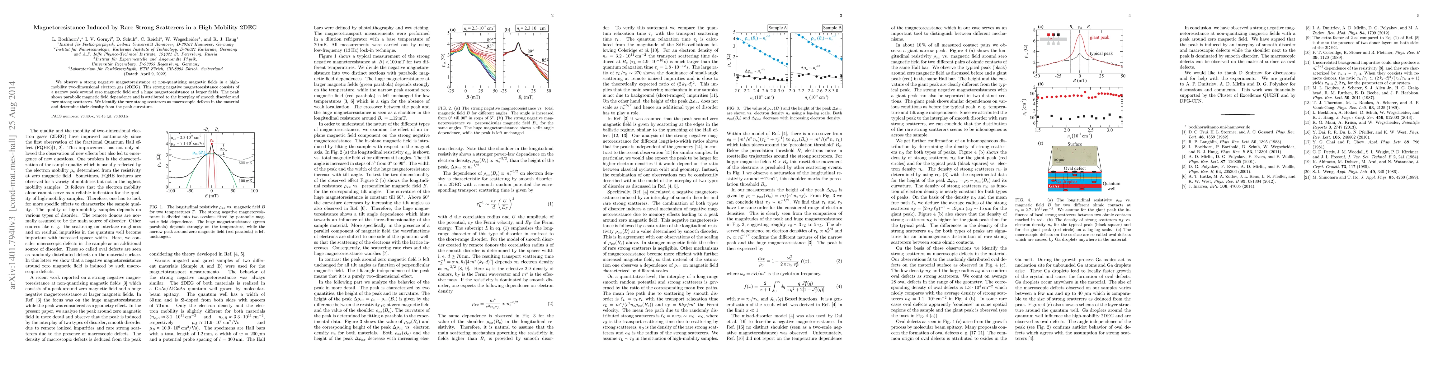This study reveals a significant negative magnetoresistance in high-mobility 2DEGs due to rare strong scatterers, identified as macroscopic defects, which induce a parabolic peak around zero magnetic field and substantial resistance at higher fields. The peak's curvature is used to determine the density of these scatterers.