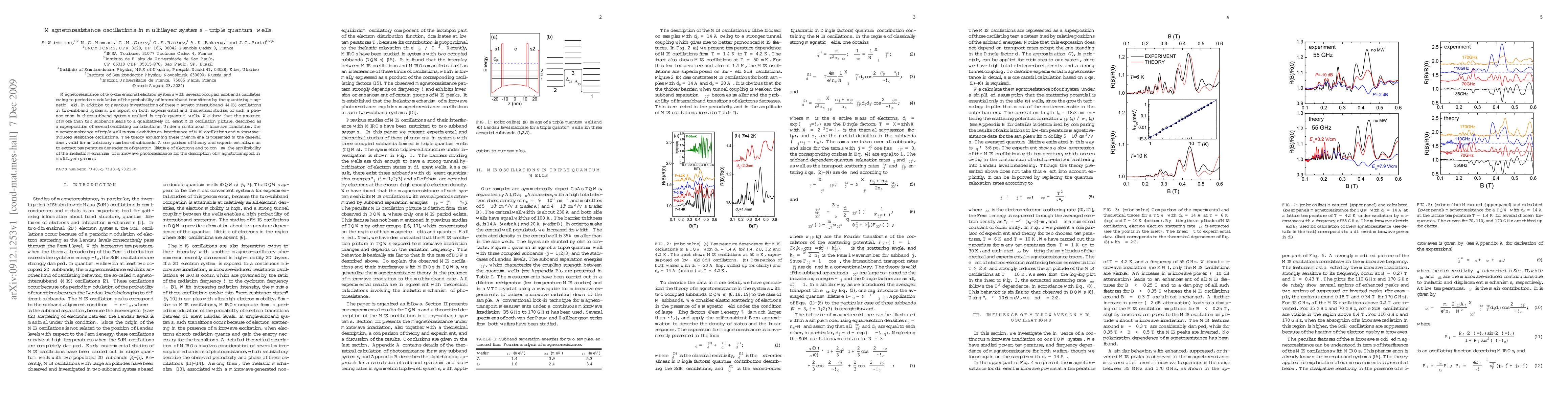 This paper investigates magnetoresistance oscillations in triple quantum wells, revealing that multiple occupied subbands lead to complex superpositions of magneto-intersubband oscillations. Theoretical and experimental studies show interference effects under microwave irradiation, allowing extraction of the temperature dependence of quantum lifetime and confirming the inelastic mechanism for microwave photoresistance in multilayer systems.