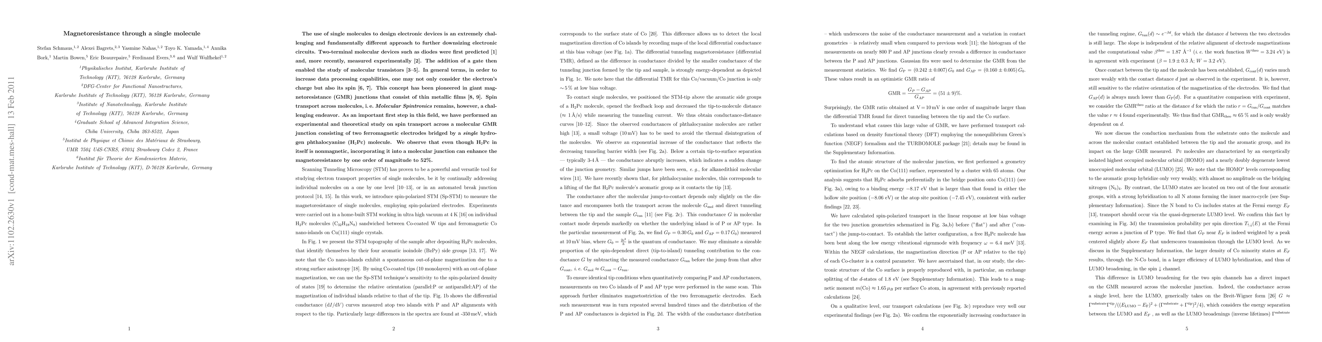 This paper investigates spin transport across a molecular junction using a single hydrogen phthalocyanine (H2Pc) molecule between two ferromagnetic electrodes, achieving a significant enhancement in magnetoresistance to 52%, marking a crucial step in the field of molecular spintronics.