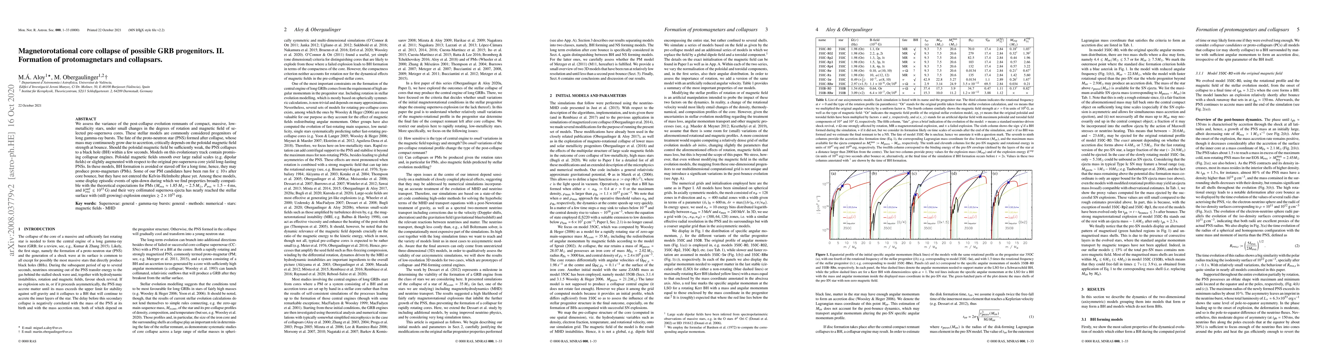 Research on long gamma-ray bursts reveals that protomagnetars and collapsars may form from massive, low-metallicity stars after core collapse, depending on magnetic field strength at bounce. These models can produce nearly collimated supernova ejecta with high explosion energies.