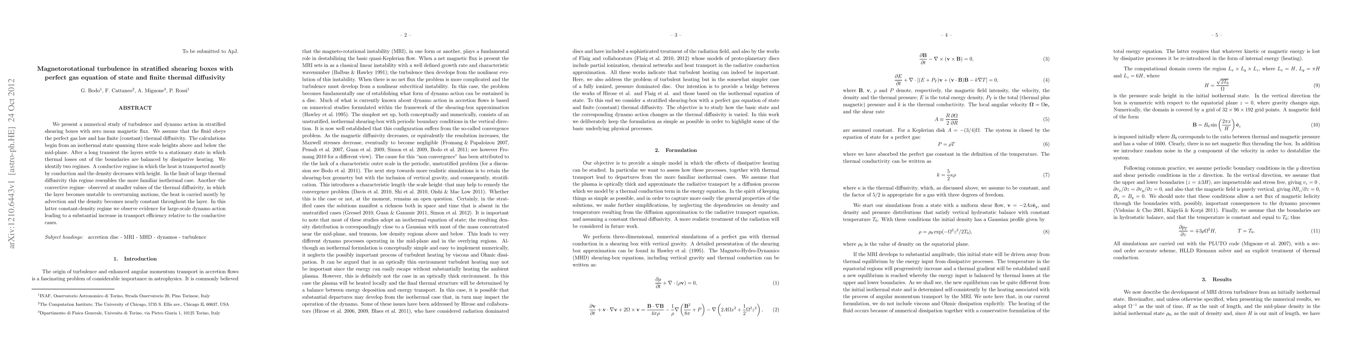 This paper investigates magnetorotational turbulence in stratified shearing boxes, identifying two regimes: a conductive regime with heat transported by conduction and a convective regime where advection dominates, leading to large-scale dynamo action and increased transport efficiency.