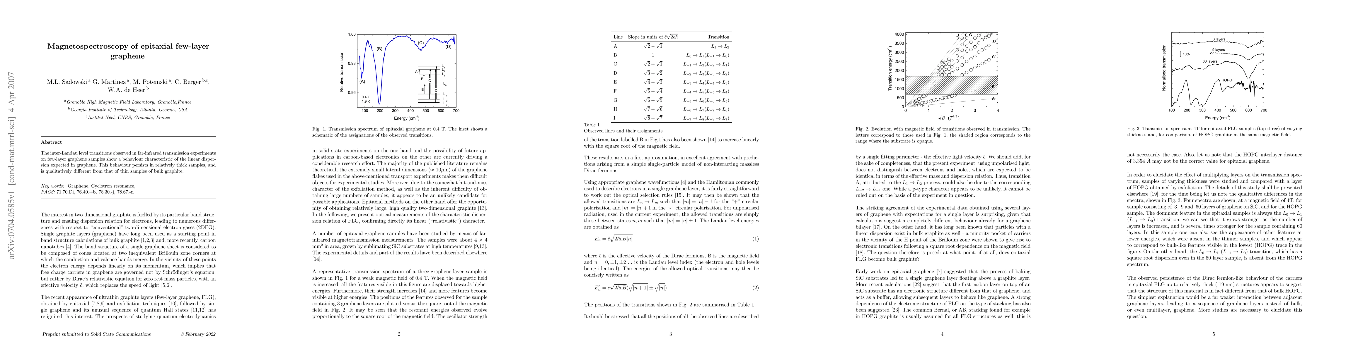 Summary: Magnetospectroscopy reveals that few-layer graphene exhibits inter-Landau level transitions consistent with its linear dispersion, differing from bulk graphite, even in thicker samples. This suggests unique electronic properties in few-layer graphene.