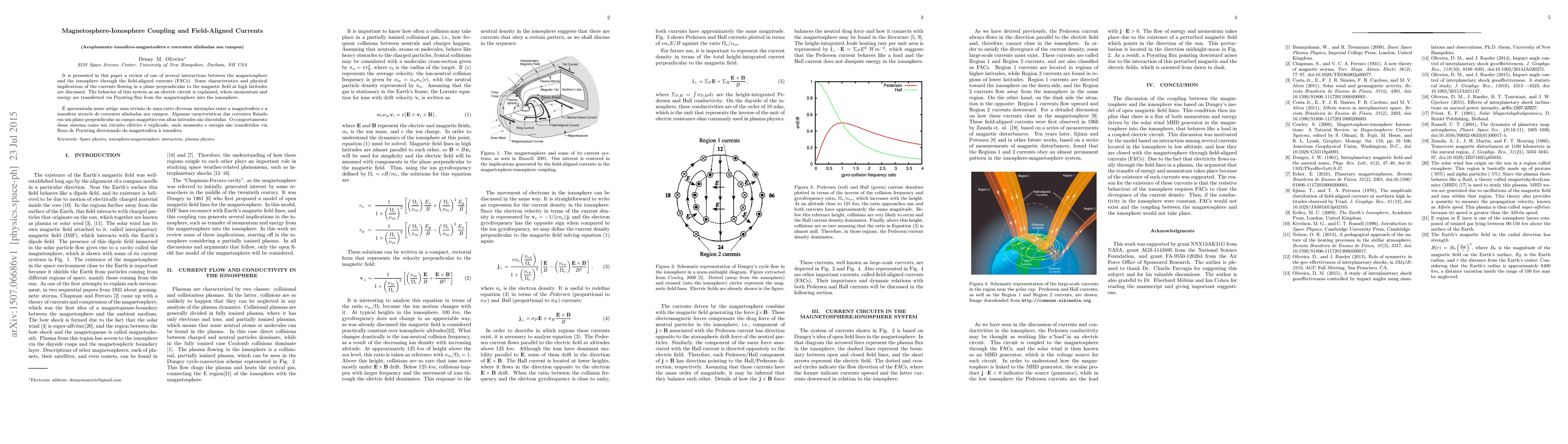 The paper presents a review of magnetosphere-ionosphere coupling through field-aligned currents (FACs), discussing their characteristics and energy/momentum transfer from magnetosphere to ionosphere as an electric circuit.