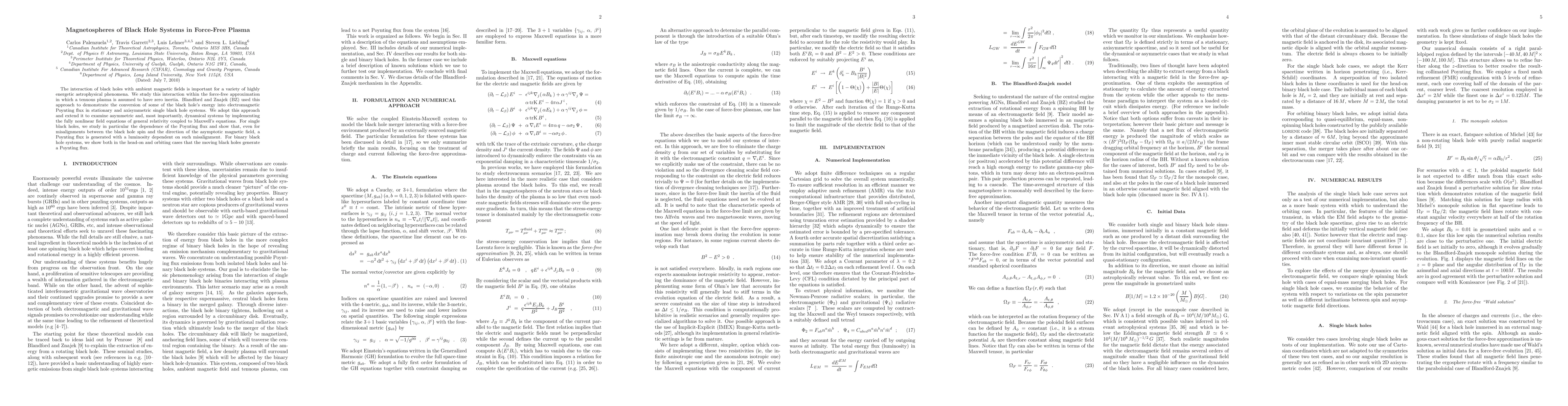The interaction of black holes with ambient magnetic fields is important for a variety of highly energetic astrophysical phenomena. We study this interaction within the force-free approximation in which a tenuous plasma is assumed to have zero inertia. Blandford and Znajek (BZ) used this approach to demonstrate the conversion of some of the black hole's energy into electromagnetic Poynting flux in stationary and axisymmetric single black hole systems. We adopt this approach and extend it to examine asymmetric and, most importantly, dynamical systems by implementing the fully nonlinear field equations of general relativity coupled to Maxwell's equations. For single black holes, we study in particular the dependence of the Poynting flux and show that, even for misalignments between the black hole spin and the direction of the asymptotic magnetic field, a Poynting flux is generated with a luminosity dependent on such misalignment. For binary black hole systems, we show both in the head-on and orbiting cases that the moving black holes generate a Poynting flux.