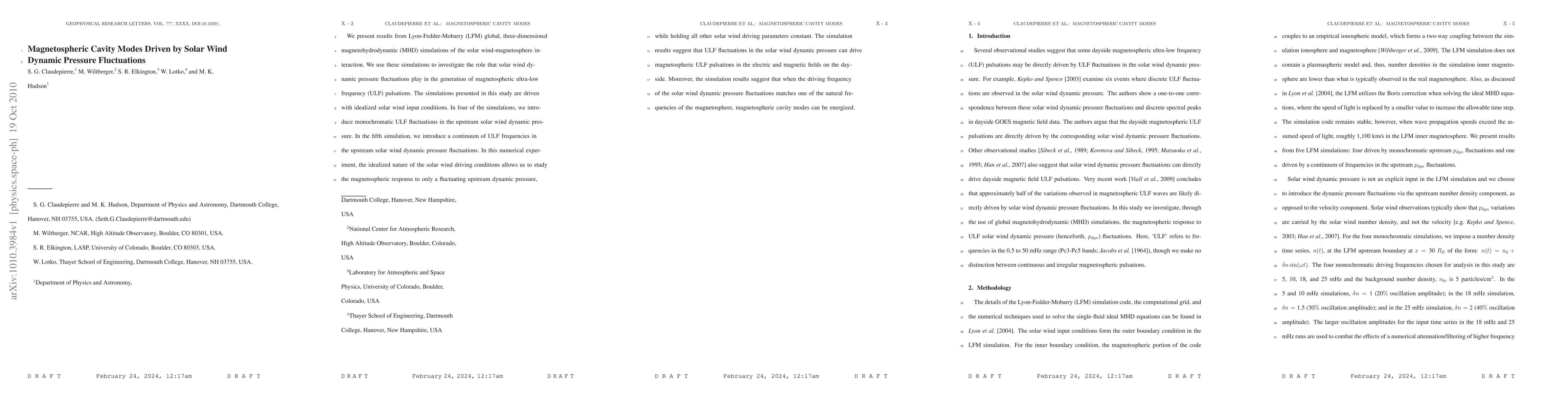 This study uses global MHD simulations to explore how solar wind dynamic pressure fluctuations generate magnetospheric ultra-low frequency (ULF) pulsations, finding that matching the driving frequency to the magnetosphere's natural frequencies can energize magnetospheric cavity modes.