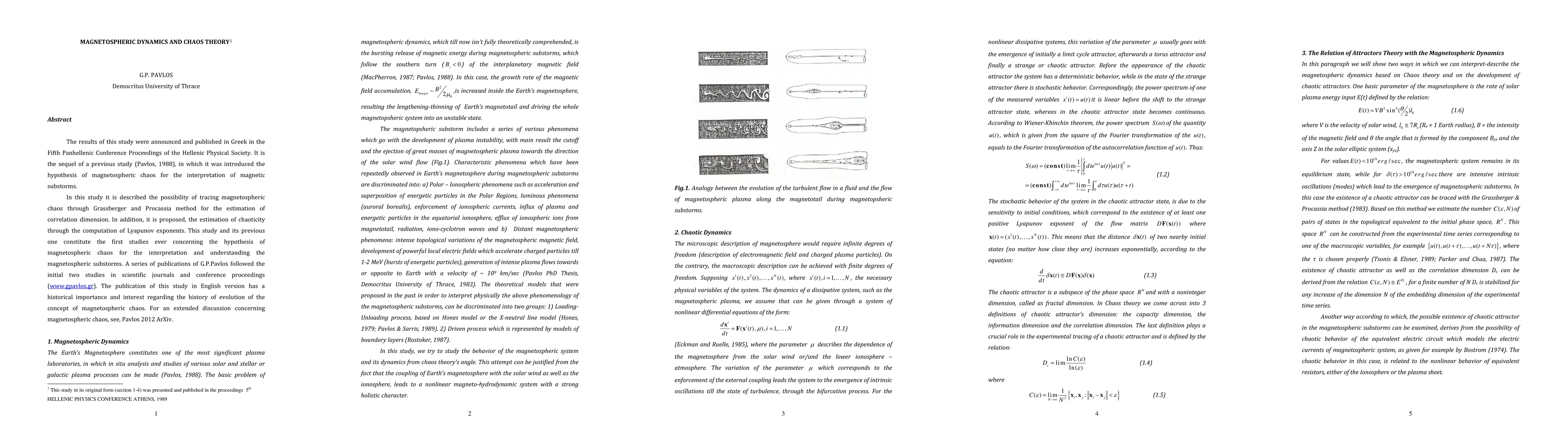 The results of this study were announced and published in Greek in the Fifth Panhellenic Conference Proceedings of the Hellenic Physical Society. It is the sequel of a previous study (Pavlos, 1988), in which it was introduced the hypothesis of magnetospheric chaos for the interpretation of magnetic substorms. In this study it is described the possibility of tracing magnetospheric chaos through Grassberger and Procassia method for the estimation of correlation dimension. In addition, it is proposed, the estimation of chaoticity through the computation of Lyapunov exponents. This study and its previous one constitute the first studies ever concerning the hypothesis of magnetospheric chaos for the interpretation and understanding the magnetospheric substorms. A series of publications of G.P.Pavlos followed the initial two studies in scientific journals and conference proceedings (www.gpavlos.gr). The publication of this study in English version has a historical importance and interest regarding the history of evolution of the concept of magnetospheric chaos. For an extended discussion concerning magnetospheric chaos, see, Pavlos 2012 ArXiv.