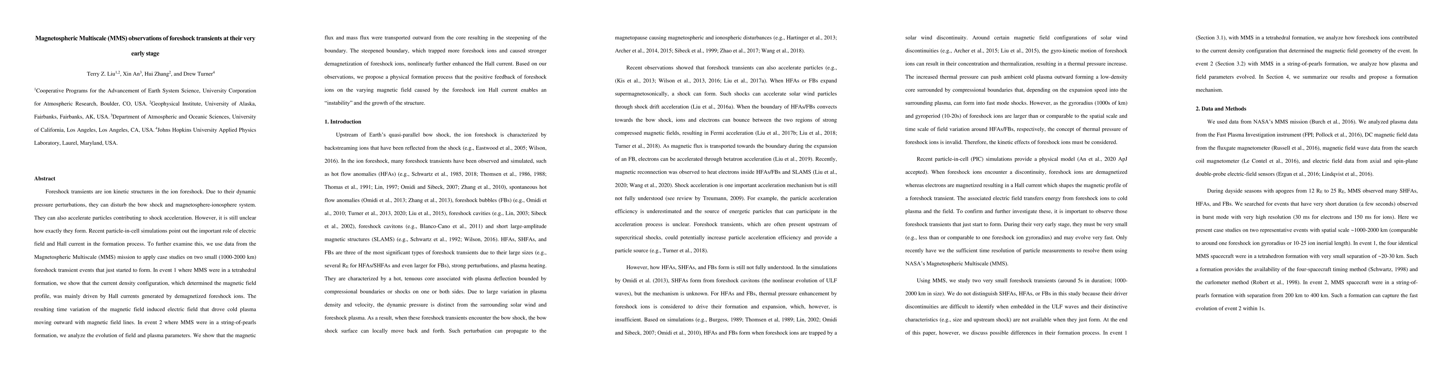 The MMS mission provides insights into the formation of foreshock transients, revealing that Hall currents from demagnetized foreshock ions drive the magnetic field profile and electric field variations, while the outward transport of magnetic and mass flux steepens the boundary, enhancing the Hall current and promoting transient growth.