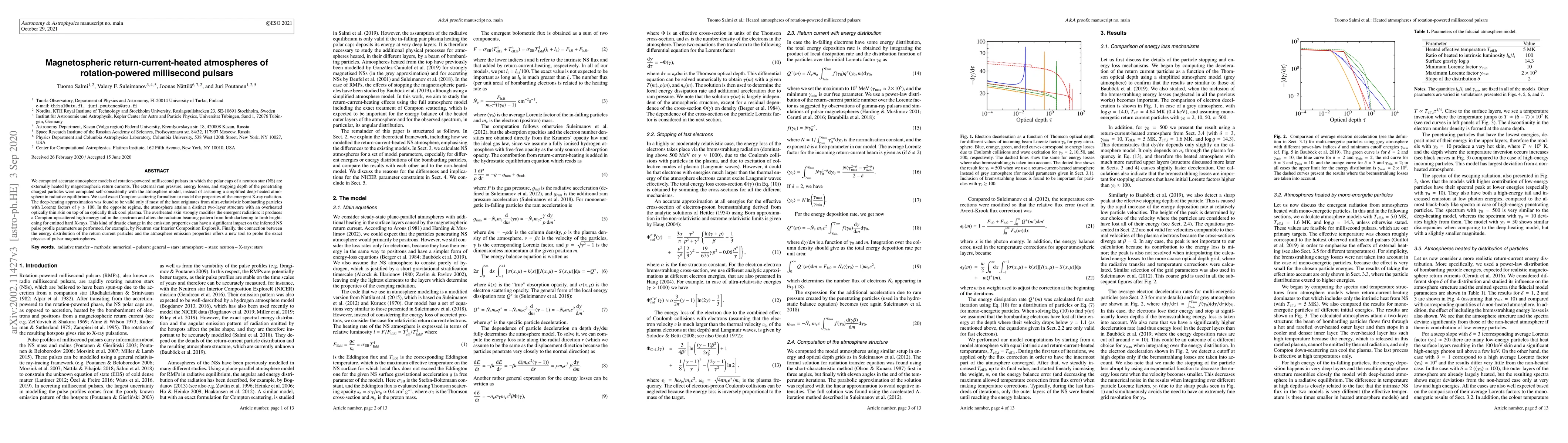 This paper models the atmospheres of millisecond pulsars heated by magnetospheric return currents, finding that a two-layer structure forms when most heat comes from ultra-relativistic particles, altering the X-ray spectrum and beaming pattern. This impacts inferred neutron star pulse profiles and provides a new probe of pulsar magnetosphere physics.