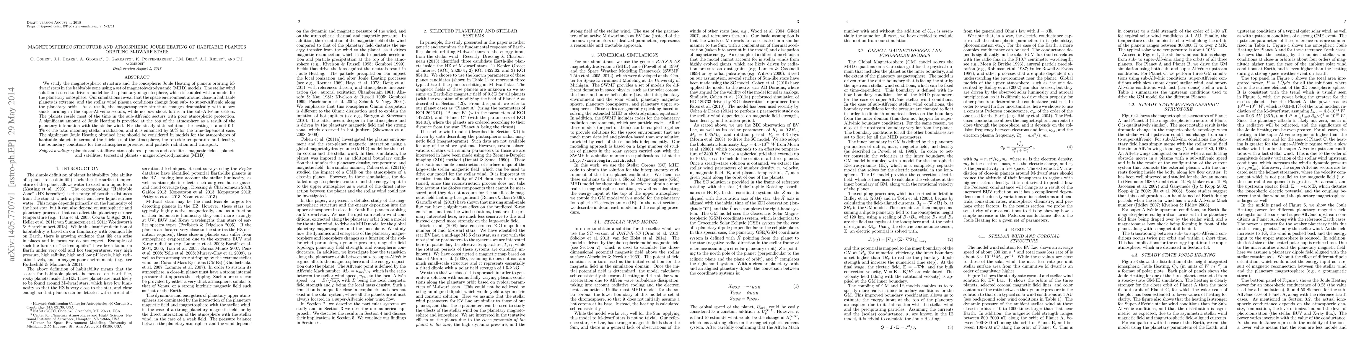 This paper investigates the magnetospheric structure and ionospheric Joule Heating of habitable planets orbiting M-dwarf stars using MHD models. It finds that these planets experience extreme space environments with significant magnetospheric changes and substantial Joule Heating, impacting atmospheric conditions.