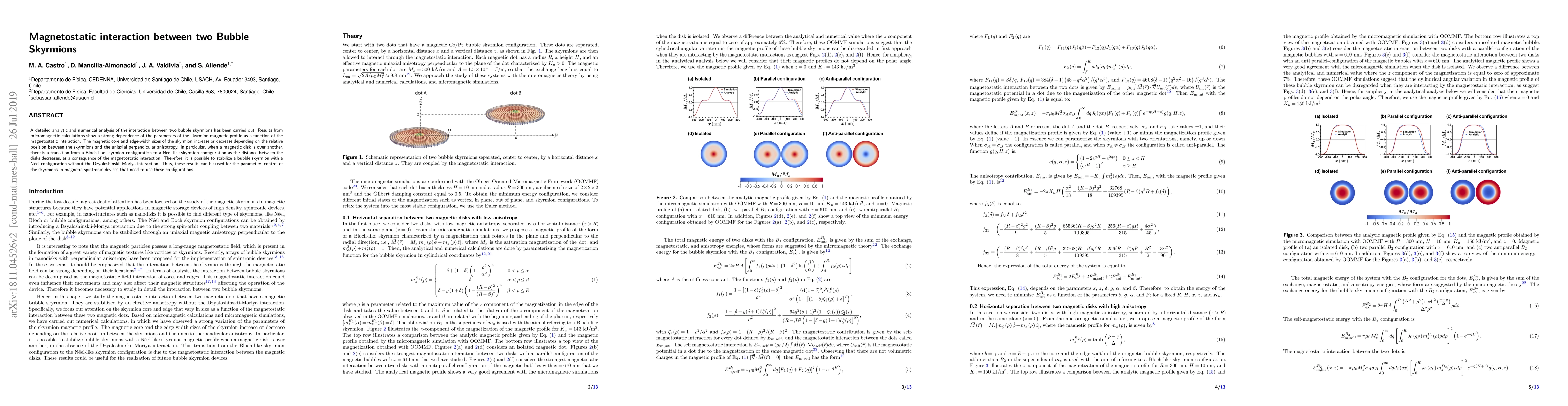 Researchers analyzed the interaction between two bubble skyrmions and found that magnetostatic interactions can alter their magnetic profiles, leading to a transition from Bloch-like to Néel-like configurations.