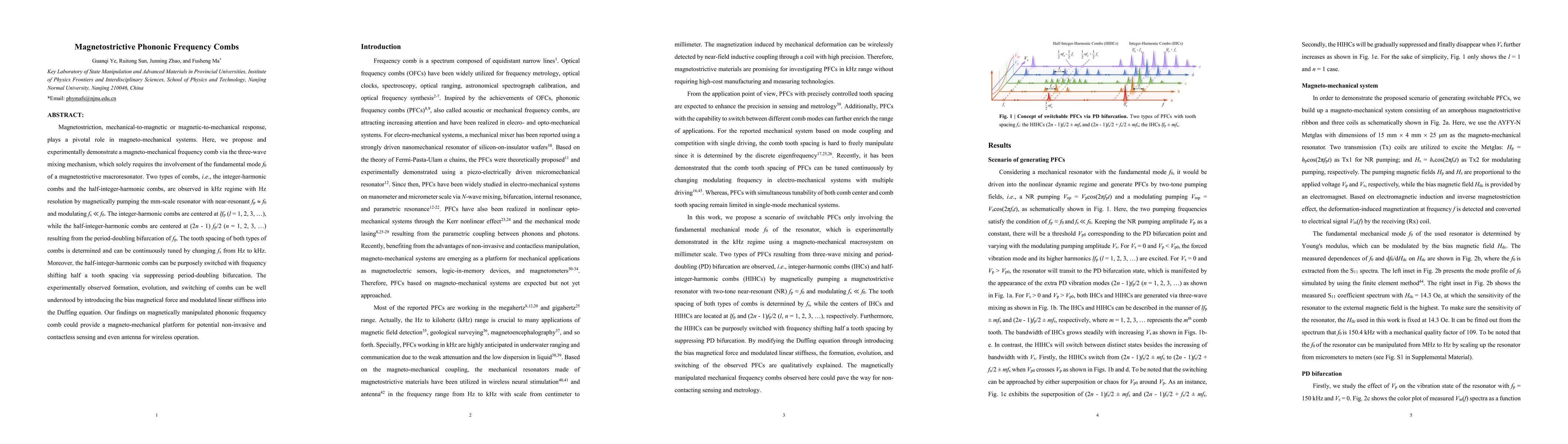 The research presents a unique combination of magnetostriction and three-wave mixing to create and control phononic frequency combs, offering a new platform for non-invasive sensing and wireless operation.