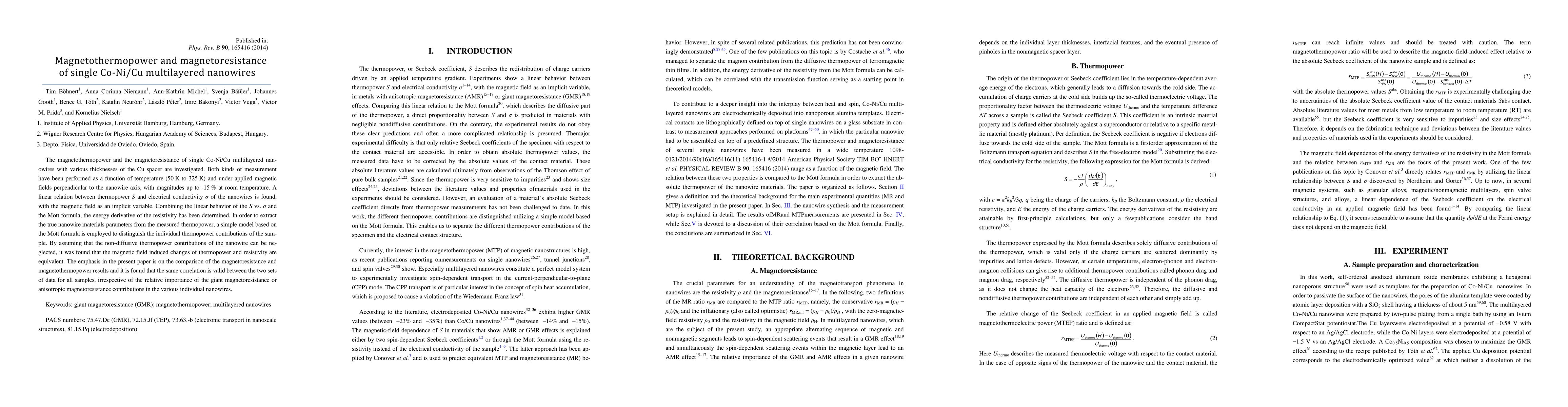 The magnetothermopower and the magnetoresistance of single Co Ni/Cu multilayered nan-owires with various thicknesses of the Cu spacer are investigated. Both kinds of measurement have been performed as a function of temperature (50 K to 325 K) and under applied magnetic fields perpendicular to the nanowire axis, with magnitudes up to 15 % at room temperature. A linear relation between thermopower S and electrical conductivity {\sigma} of the nanowires is found, with the magnetic field as an implicit variable. Combining the linear behavior of the S vs. {\sigma} and the Mott formula, the energy derivative of the resistivity has been determined. In order to extract the true nanowire materials parameters from the measured thermopower, a simple model based on the Mott formula is employed to distinguish the individual thermopower contributions of the sample. By assuming that the non-diffusive thermopower contributions of the nanowire can be neglected, it was found that the magnetic field induced changes of thermopower and resistivity are equivalent. The emphasis in the present paper is on the comparison of the magnetoresistance and magnetothermopower results and it is found that the same correlation is valid between the two sets of data for all samples, irrespective of the relative importance of the giant magnetoresistance or anisotropic magnetoresistance contributions in the various individual nanowires.