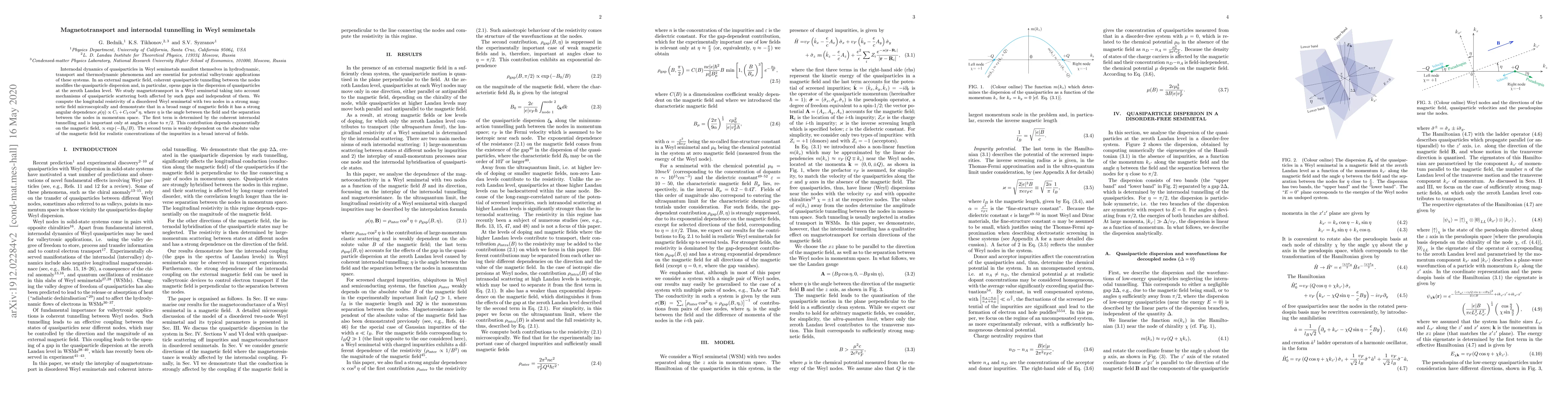 This research investigates magnetotransport in Weyl semimetals, highlighting the effects of internodal tunnelling on quasiparticle dynamics. The longitudinal resistivity exhibits a strong angular dependence, with contributions from both coherent tunnelling and impurity scattering, revealing insights into potential valleytronic applications.