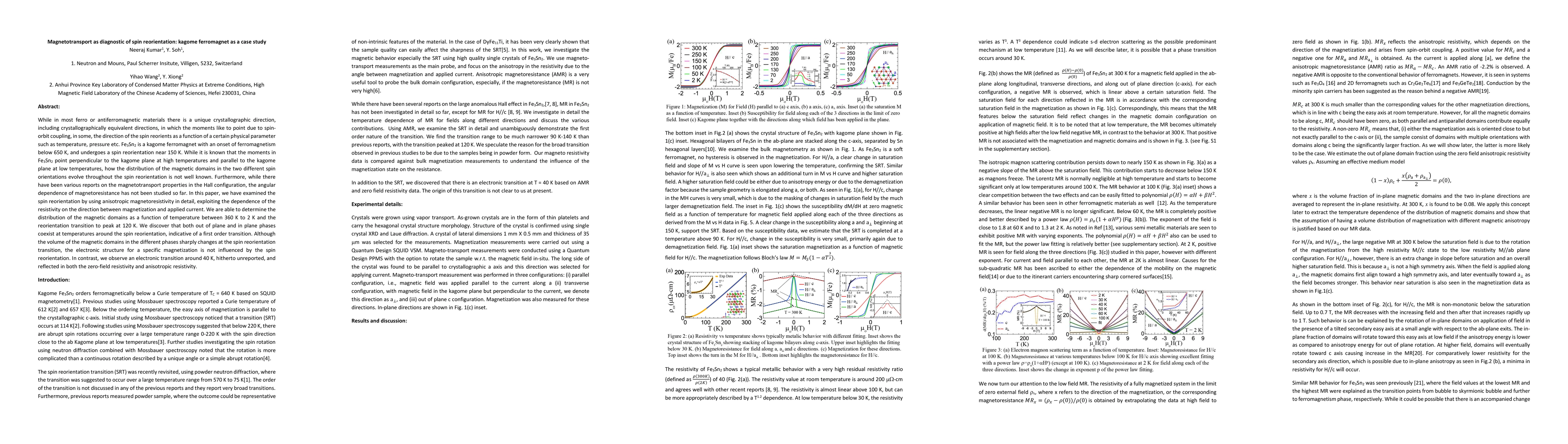 Researchers studied a kagome ferromagnet, Fe3Sn2, to understand its spin reorientation and magnetotransport properties. They found that the distribution of magnetic domains changes sharply at 120 K, but the electronic structure remains unchanged.