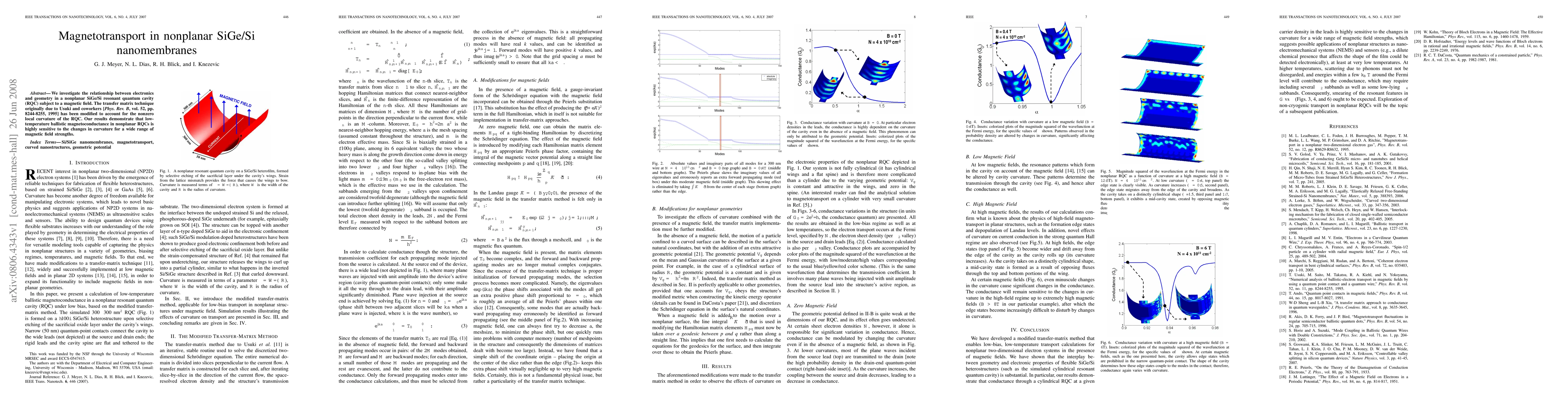 We investigate the relationship between electronics and geometry in a nonplanar SiGe/Si resonant quantum cavity (RQC) subject to a magnetic field. The transfer matrix technique originally due to Usuki and coworkers (Phys. Rev. B 52, 8244 1995) has been modified to account for the nonzero local curvature of the RQC. Our results demonstrate that low-temperature ballistic magnetoconductance in nonplanar RQCs is highly sensitive to the changes in curvature for a wide range of magnetic field strengths.