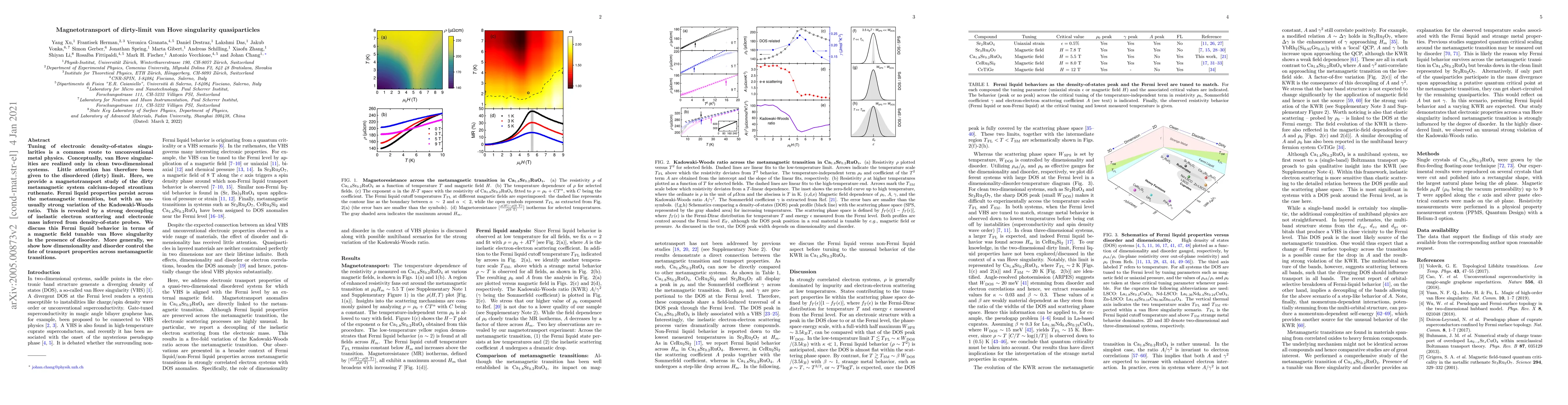 Tuning of electronic density-of-states singularities is a common route to unconventional metal physics. Conceptually, van Hove singularities are realized only in clean two-dimensional systems. Little attention has therefore been given to the disordered (dirty) limit. Here, we provide a magnetotransport study of the dirty metamagnetic system calcium-doped strontium ruthenate. Fermi liquid properties persist across the metamagnetic transition, but with an unusually strong variation of the Kadowaki-Woods ratio. This is revealed by a strong decoupling of inelastic electron scattering and electronic mass inferred from density-of-state probes. We discuss this Fermi liquid behavior in terms of a magnetic field tunable van Hove singularity in the presence of disorder. More generally, we show how dimensionality and disorder control the fate of transport properties across metamagnetic transitions.