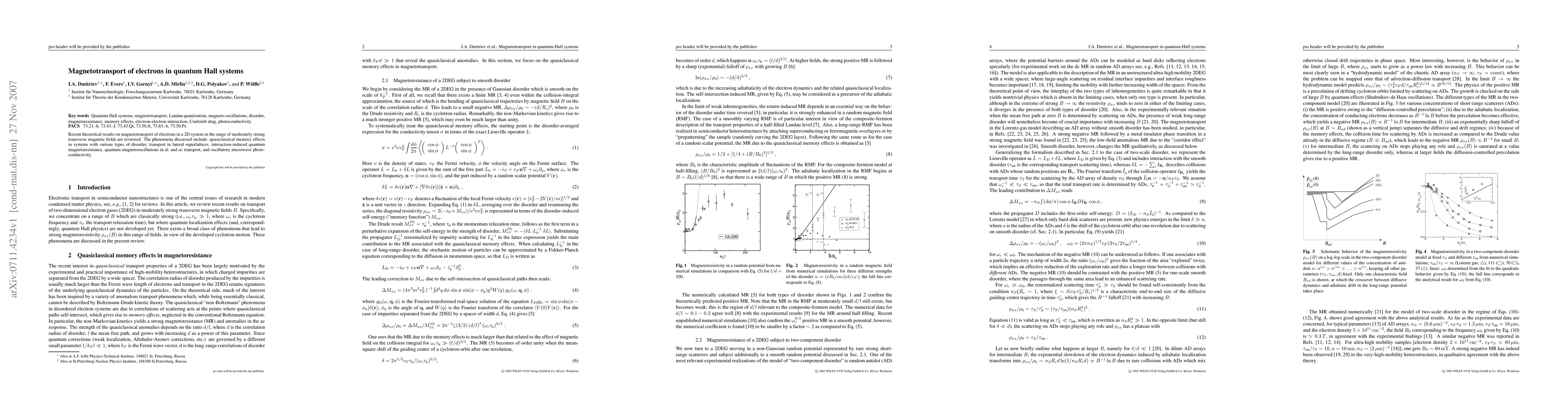 This paper reviews theoretical findings on magnetotransport in 2D quantum Hall systems under moderate magnetic fields, focusing on quasiclassical memory effects, transport in superlattices, interaction-induced quantum magnetoresistance, quantum magnetooscillations, and oscillatory microwave photoconductivity.