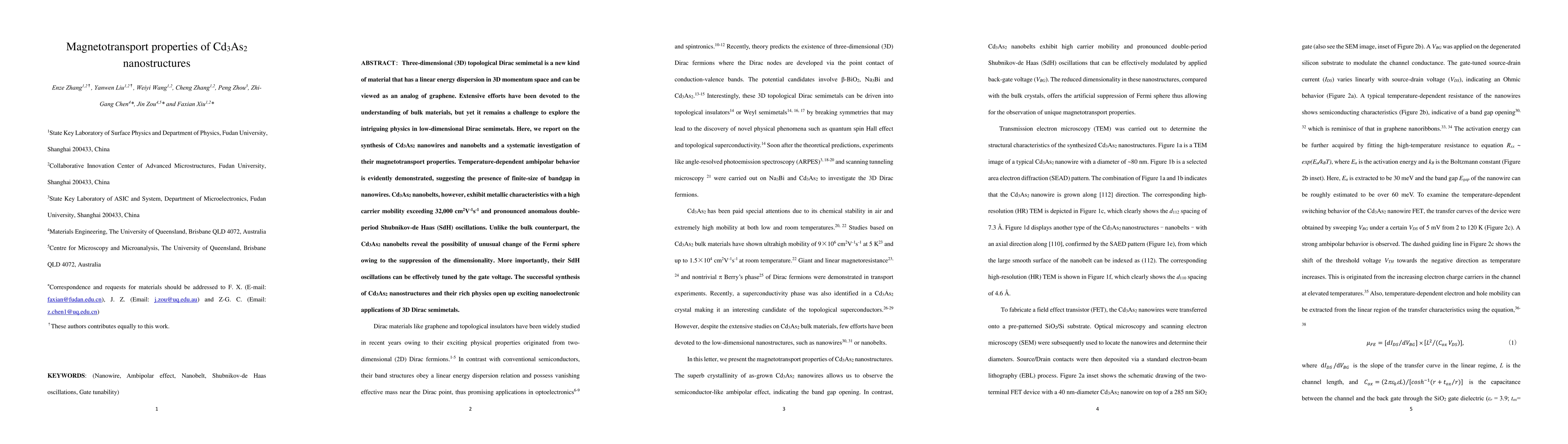 This paper investigates the magnetotransport properties of Cd3As2 nanowires and nanobelts, revealing ambipolar behavior and a finite-size bandgap in nanowires, while nanobelts exhibit metallic characteristics with high carrier mobility and tunable Shubnikov-de Haas oscillations. The findings suggest potential for novel nanoelectronic applications of 3D Dirac semimetals.