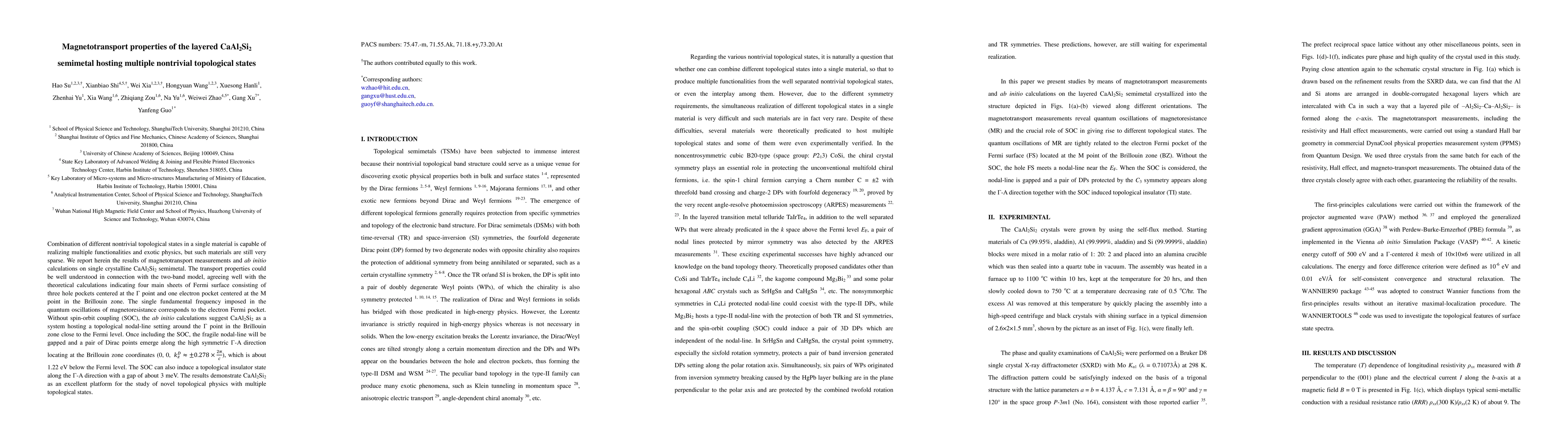 Researchers study CaAl2Si2 semimetal, discovering multiple nontrivial topological states that enable novel physics, with a focus on its magnetotransport properties and potential as a platform for studying exotic materials.