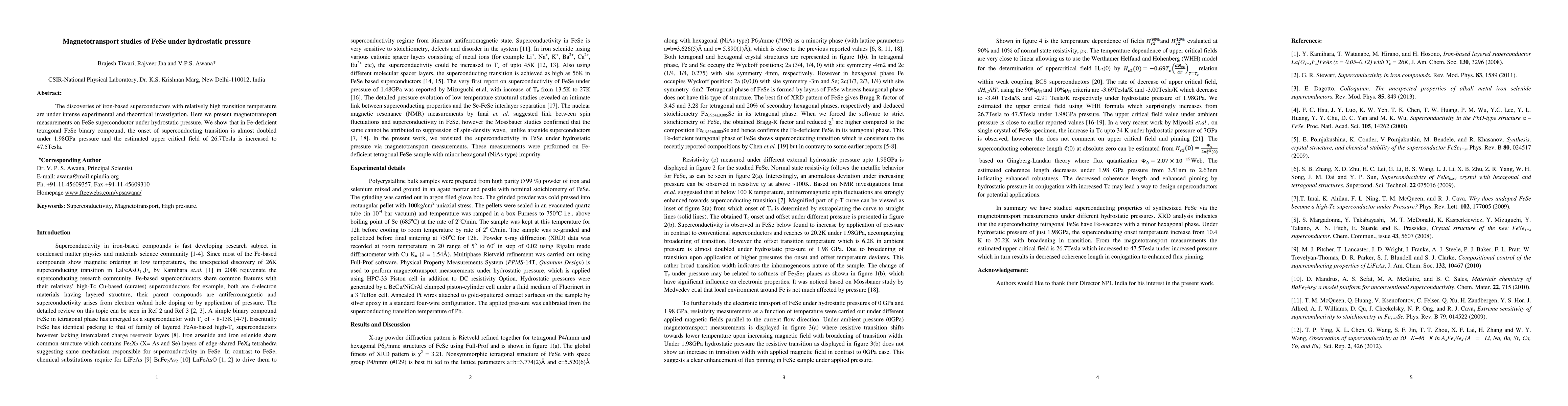 The paper presents detailed magnetotransport measurements and XRD analysis of FeSe under hydrostatic pressure, providing insights into the pressure-induced changes in superconducting properties.