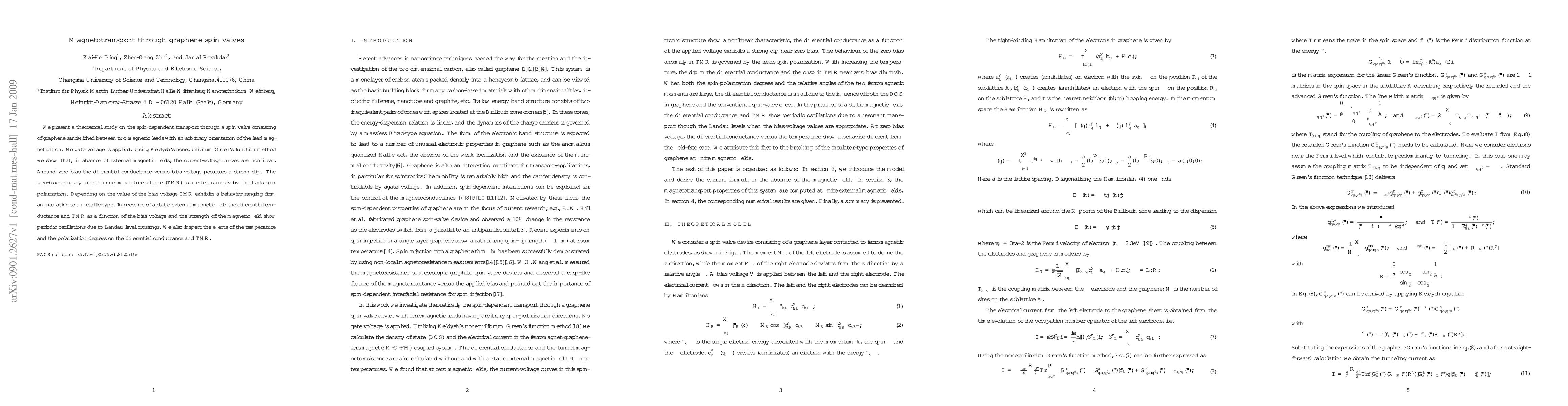 Researchers studied magnetotransport through graphene spin valves, finding non-linear current-voltage curves with a strong dip at zero bias, and periodic oscillations in presence of an external magnetic field.