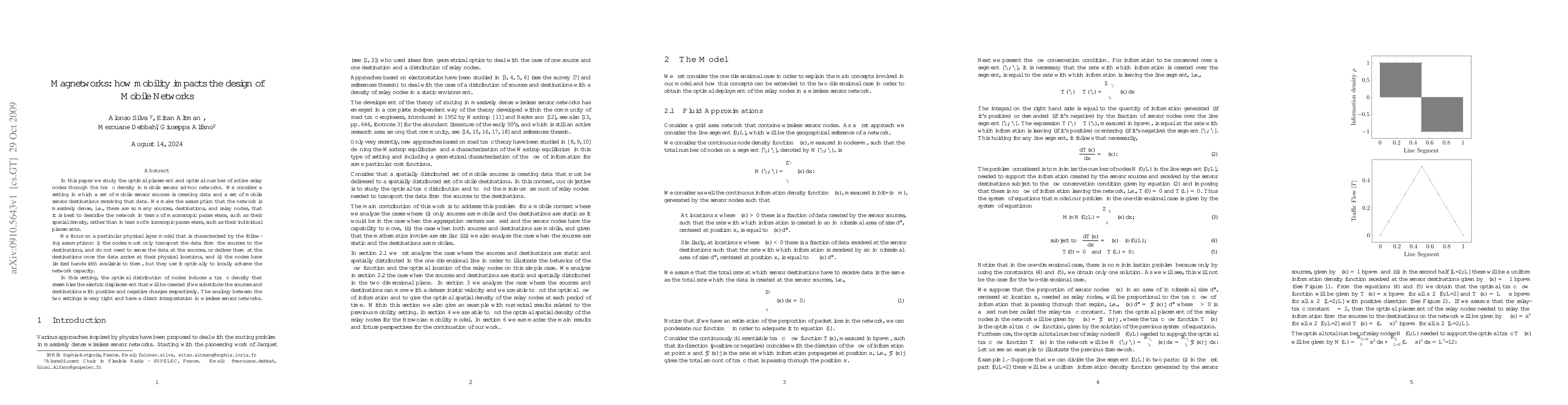 In this paper we study the optimal placement and optimal number of active relay nodes through the traffic density in mobile sensor ad-hoc networks. We consider a setting in which a set of mobile sensor sources is creating data and a set of mobile sensor destinations receiving that data. We make the assumption that the network is massively dense, i.e., there are so many sources, destinations, and relay nodes, that it is best to describe the network in terms of macroscopic parameters, such as their spatial density, rather than in terms of microscopic parameters, such as their individual placements. We focus on a particular physical layer model that is characterized by the following assumptions: i) the nodes must only transport the data from the sources to the destinations, and do not need to sense the data at the sources, or deliver them at the destinations once the data arrive at their physical locations, and ii) the nodes have limited bandwidth available to them, but they use it optimally to locally achieve the network capacity. In this setting, the optimal distribution of nodes induces a traffic density that resembles the electric displacement that will be created if we substitute the sources and destinations with positive and negative charges respectively. The analogy between the two settings is very tight and have a direct interpretation in wireless sensor networks.