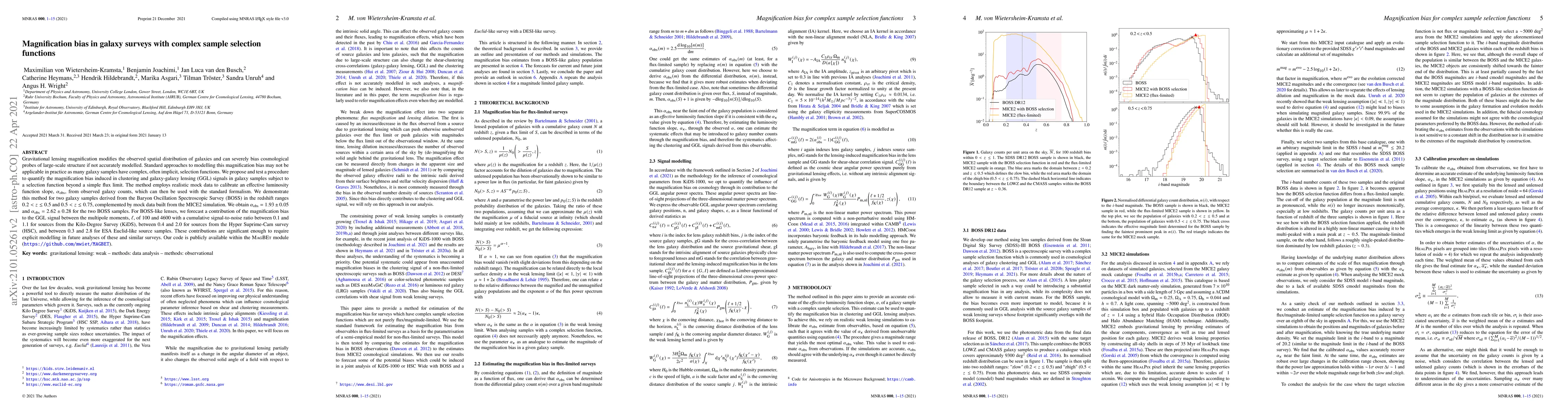 Gravitational lensing magnification modifies the observed spatial distribution of galaxies and can severely bias cosmological probes of large-scale structure if not accurately modelled. Standard approaches to modelling this magnification bias may not be applicable in practice as many galaxy samples have complex, often implicit, selection functions. We propose and test a procedure to quantify the magnification bias induced in clustering and galaxy-galaxy lensing (GGL) signals in galaxy samples subject to a selection function beyond a simple flux limit. The method employs realistic mock data to calibrate an effective luminosity function slope, $\alpha_{\rm{obs}}$, from observed galaxy counts, which can then be used with the standard formalism. We demonstrate this method for two galaxy samples derived from the Baryon Oscillation Spectroscopic Survey (BOSS) in the redshift ranges $0.2 < z \leq 0.5$ and $0.5 < z \leq 0.75$, complemented by mock data built from the MICE2 simulation. We obtain $\alpha_{\rm{obs}} = 1.93 \pm 0.05$ and $\alpha_{\rm{obs}} = 2.62 \pm 0.28$ for the two BOSS samples. For BOSS-like lenses, we forecast a contribution of the magnification bias to the GGL signal between the multipole moments, $\ell$, of 100 and 4600 with a cumulative signal-to-noise ratio between 0.1 and 1.1 for sources from the Kilo-Degree Survey (KiDS), between 0.4 and 2.0 for sources from the Hyper Suprime-Cam survey (HSC), and between 0.3 and 2.8 for ESA Euclid-like source samples. These contributions are significant enough to require explicit modelling in future analyses of these and similar surveys. Our code is publicly available within the \textsc{MagBEt} module (\url{https://github.com/mwiet/MAGBET}).