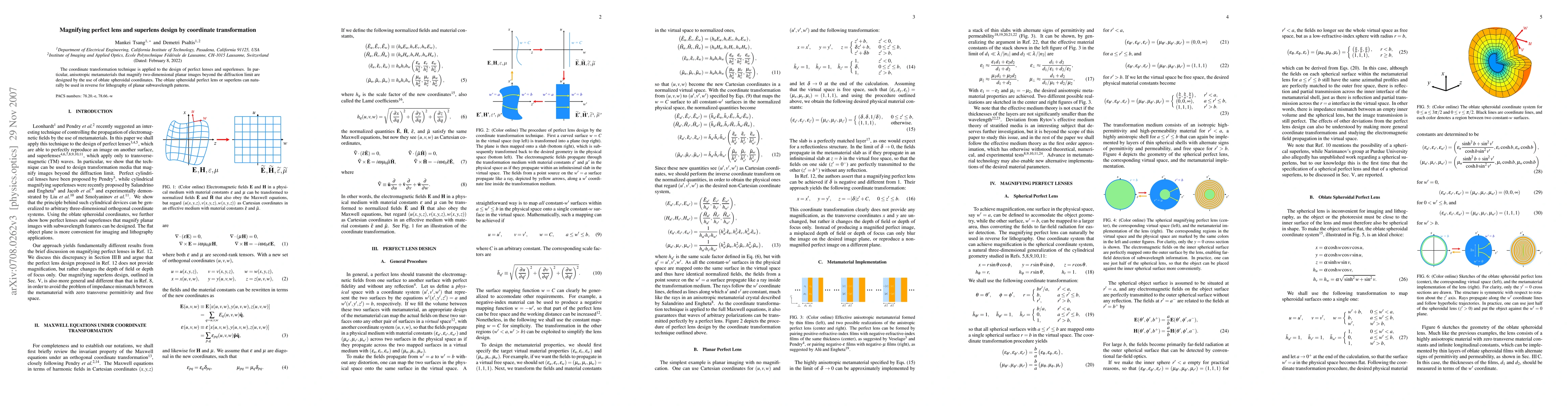 This paper utilizes coordinate transformation, specifically oblate spheroidal coordinates, to design perfect lenses and superlenses from anisotropic metamaterials that magnify two-dimensional images beyond the diffraction limit. These lenses can also be reversed for subwavelength pattern lithography.