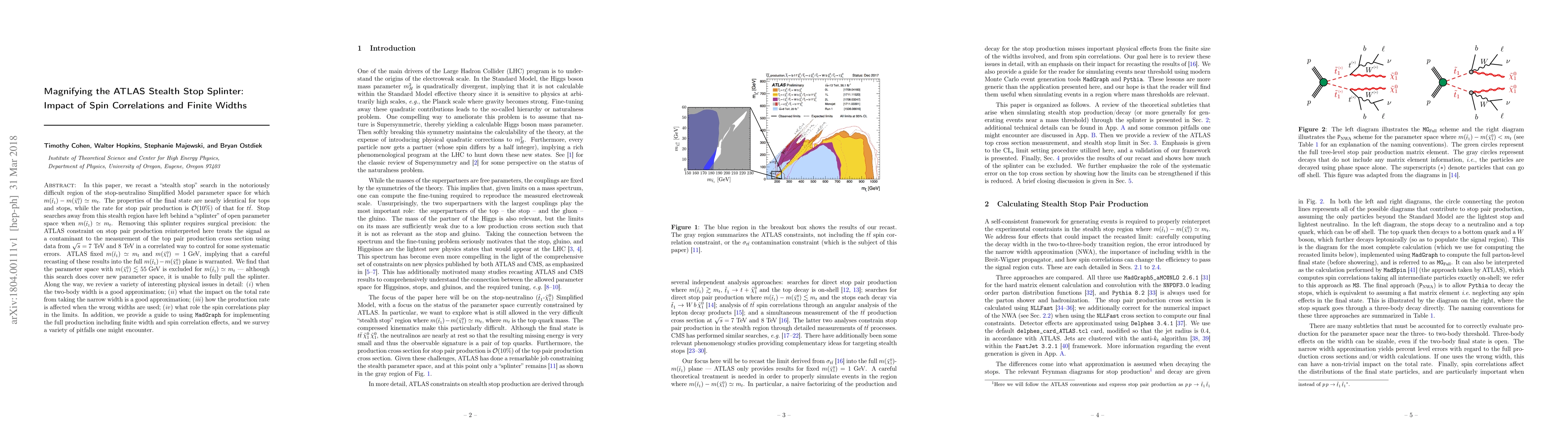 In this paper, we recast a "stealth stop" search in the notoriously difficult region of the stop-neutralino Simplified Model parameter space for which $m(\tilde{t}) - m(\tilde{\chi}) \simeq m_t$. The properties of the final state are nearly identical for tops and stops, while the rate for stop pair production is $\mathcal{O}(10\%)$ of that for $t\bar{t}$. Stop searches away from this stealth region have left behind a "splinter" of open parameter space when $m(\tilde{t}) \simeq m_t$. Removing this splinter requires surgical precision: the ATLAS constraint on stop pair production reinterpreted here treats the signal as a contaminant to the measurement of the top pair production cross section using data from $\sqrt{s} = 7 \text{ TeV}$ and $8 \text{ TeV}$ in a correlated way to control for some systematic errors. ATLAS fixed $m(\tilde{t}) \simeq m_t$ and $m(\tilde{\chi})= 1 \text{ GeV}$, implying that a careful recasting of these results into the full $m(\tilde{t}) - m(\tilde{\chi})$ plane is warranted. We find that the parameter space with $m(\tilde{\chi})\lesssim 55 \text{ GeV}$ is excluded for $m(\tilde{t}) \simeq m_t$ --- although this search does cover new parameter space, it is unable to fully pull the splinter. Along the way, we review a variety of interesting physical issues in detail: (i) when the two-body width is a good approximation; (ii) what the impact on the total rate from taking the narrow width is a good approximation; (iii) how the production rate is affected when the wrong widths are used; (iv) what role the spin correlations play in the limits. In addition, we provide a guide to using MadGraph for implementing the full production including finite width and spin correlation effects, and we survey a variety of pitfalls one might encounter.