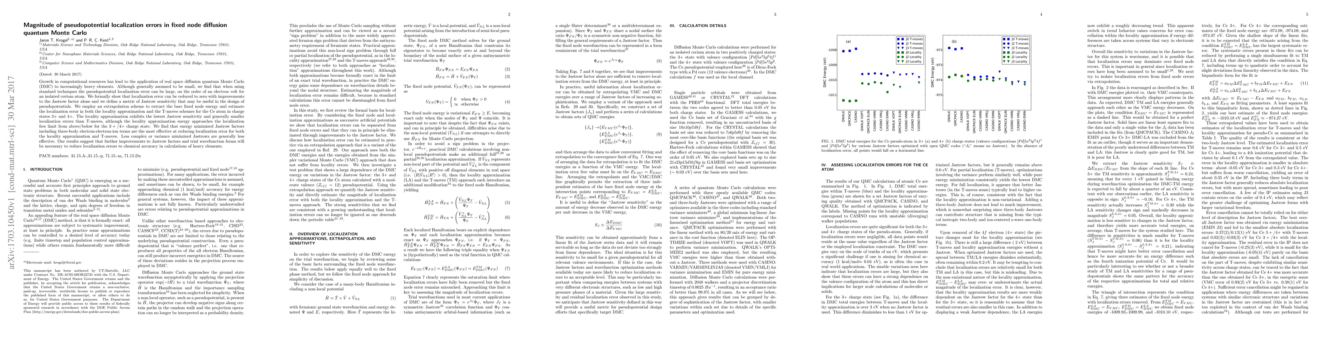 This paper investigates the pseudopotential localization errors in fixed node diffusion quantum Monte Carlo (DMC) simulations, finding significant errors for heavy elements like cerium. The study proposes that these errors can be minimized by enhancing the Jastrow factor, particularly with three-body electron-electron-ion terms, and suggests that further improvements in Jastrow factors and trial wavefunctions are needed to achieve chemical accuracy in heavy element calculations.